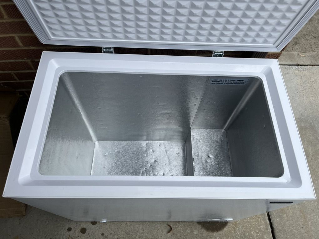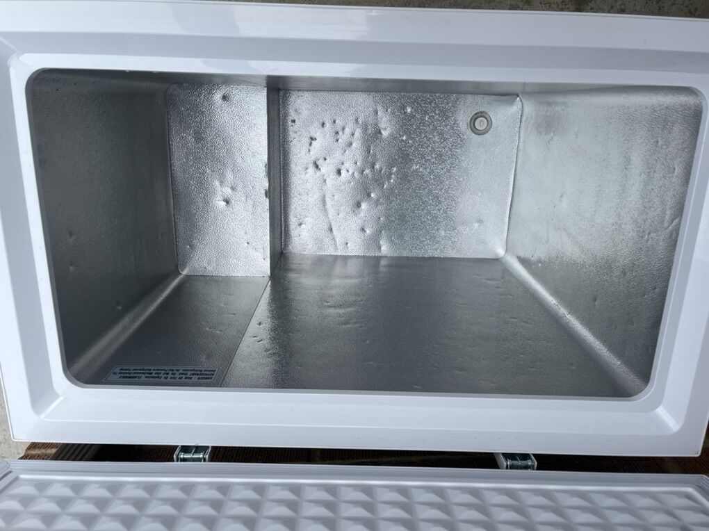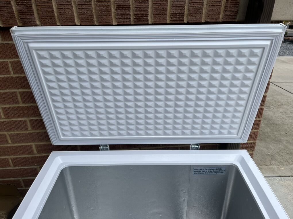 ApplePayFreezer chest in good condition. The dimensions are 32.6" H x 36.9" W x 22" L, and weighs 83.1 lbs. Great for storing extra ice, stocking up on good deals, and those big frozen items.
