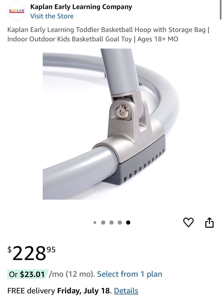 ApplePayKaplan Toddler Basketball Hoop new in box. Normally $240