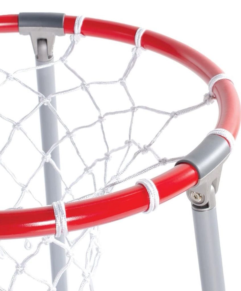 Durable, easy-to-clean metal frame and netted hoops Promote group gross motor activities or individual play Removable storage bag included Measures 31H with a 19.5 hoop diameter and 29 base diameter Ages 18 months and up