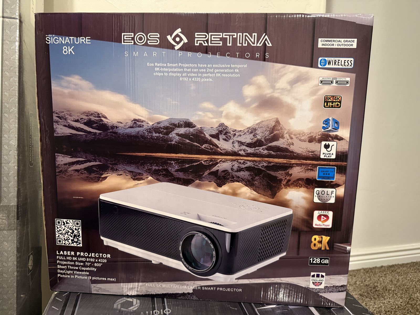 • EOS Retina Signature 8K Smart Laser Projector (8192 x 4320 resolution, short throw capable, 128GB storage, Smart TV built in)