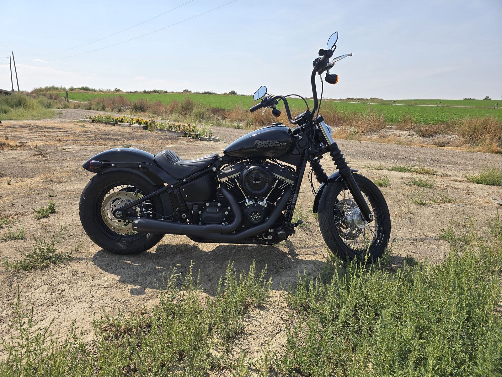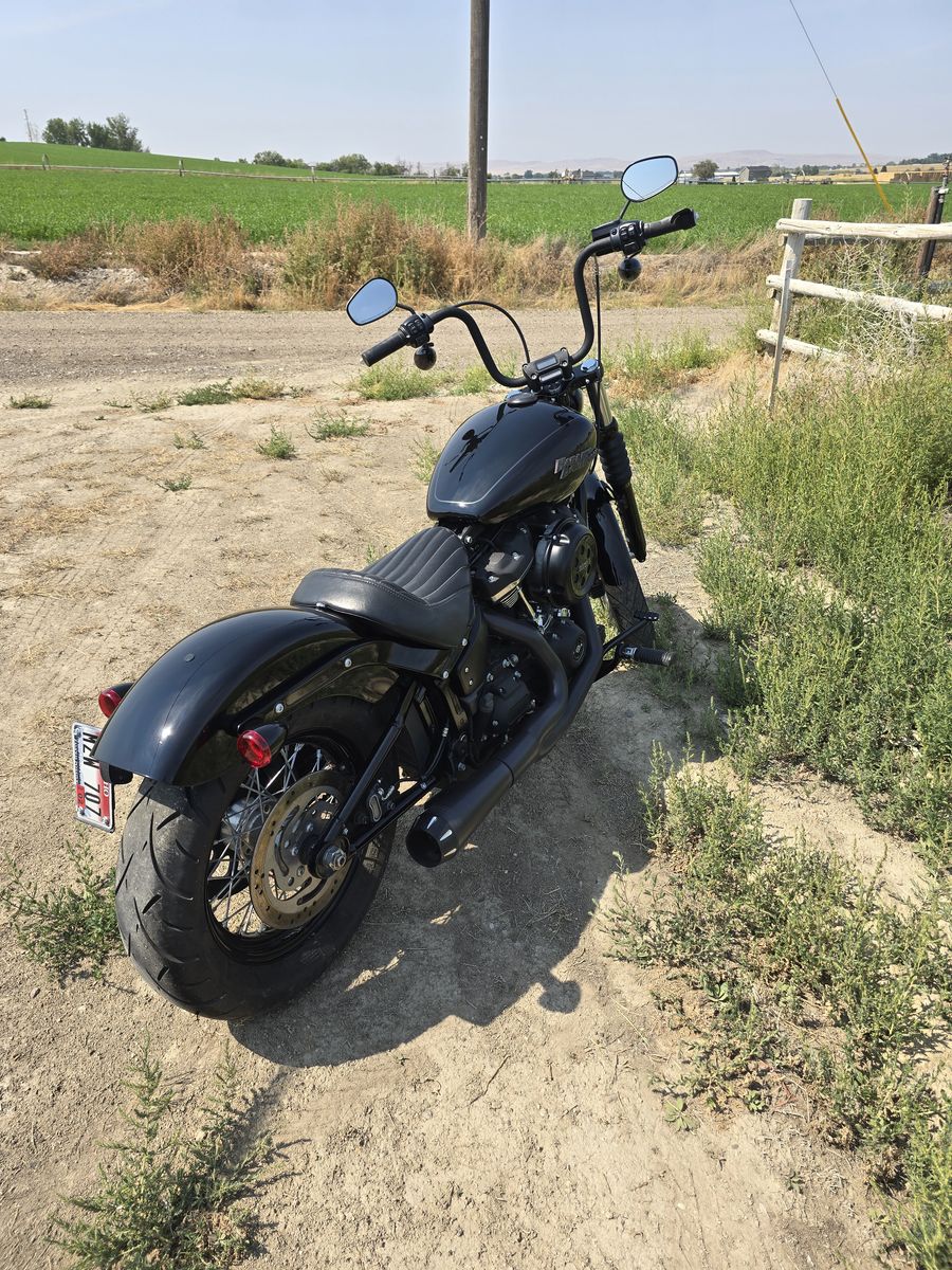 Super Clean Street Bob with the 107 Milwaukee 8 and Bassani Road Rage exhaust. OBO