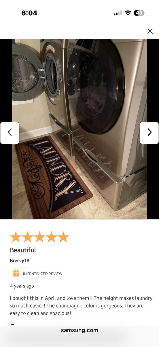 PayPalTwo champagne colored pedestals for Samsung washers and dryers. New in unopened boxes. $150 each OBO - I was unable to use them due to laundry room space issues.