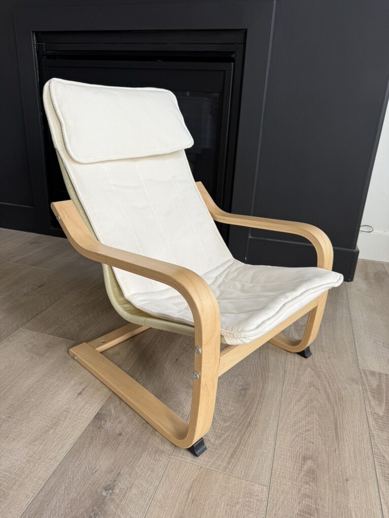VenmoAdorable child-size lounge chair with natural wood bent frame and cream cushion. Lightweight but sturdy. Perfect for a reading corner, playroom, or nursery.