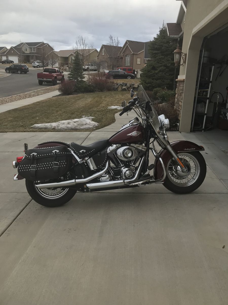 This 2014 Harley-Davidson Heritage with a low < 8300 miles offers a perfect blend of nostalgic, classic style and modern touring performance, powered by the robust air-cooled Twin Cam 103™ engine. A true icon of the open road, this bike is built for the long haul while remaining surprisingly agile for a 730-pound motorcycle. Key Features & Selling Points: Powerful Twin Cam 103™ Engine: Experience the legendary power and durability of the 103 cubic inch (1690cc) V-twin engine, which delivers a healthy 100 ft-lb of torque at 3,250 rpm for effortless passing and hill climbing. 6-Speed Cruise Drive® Transmission: Paired with the potent engine, the smooth-shifting 6-speed transmission allows for comfortable, low-RPM cruising on the highway. Detachable Windshield: Go from a classic, wind-in-your-face cruiser to a comfortable touring machine in seconds with the standard, quick-detach Lexan® windshield. Leather Saddlebags: With the passenger seat and rear rack (off at the moment) included: Vance Hines exhaust and tuner (for a little extra kick and sound) along with stock exhaust: New rear tire: Ample and secure storage capacity for all your essentials, making it ideal for both weekend trips and cross-country adventures. Owned by an older mature rider who is downsizing.