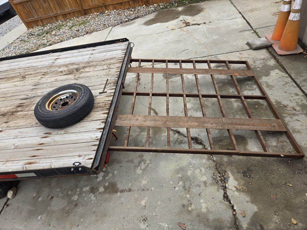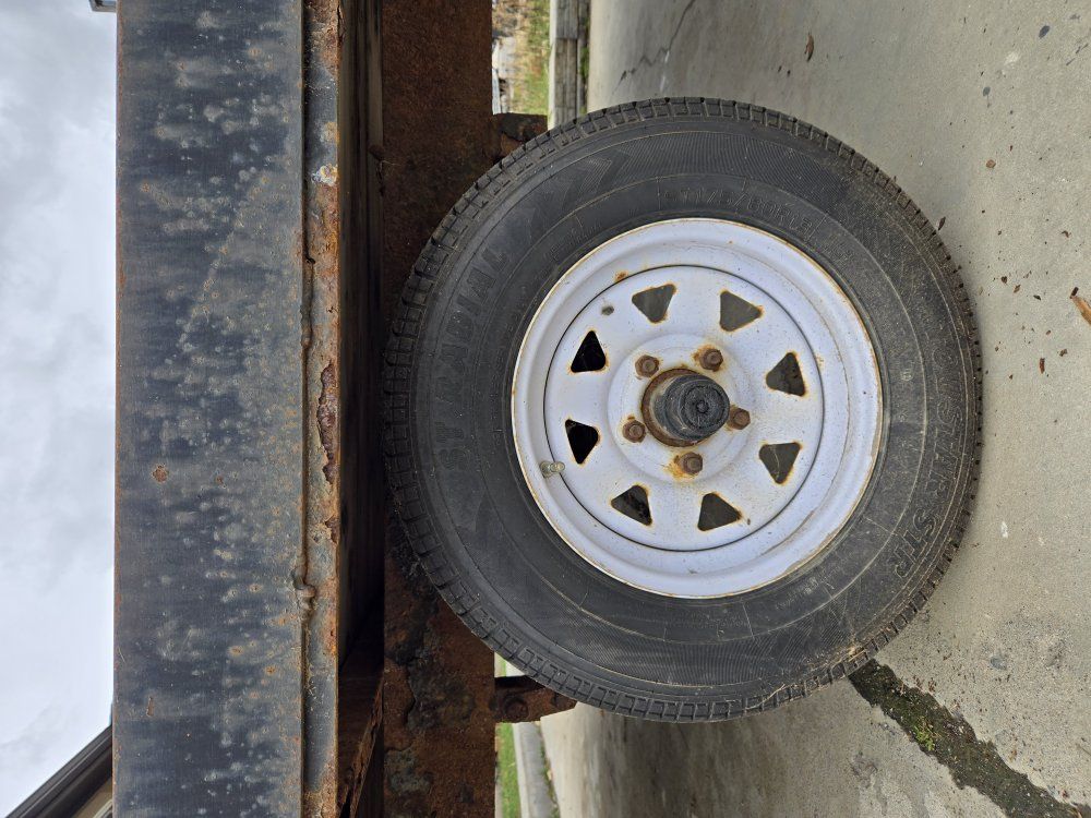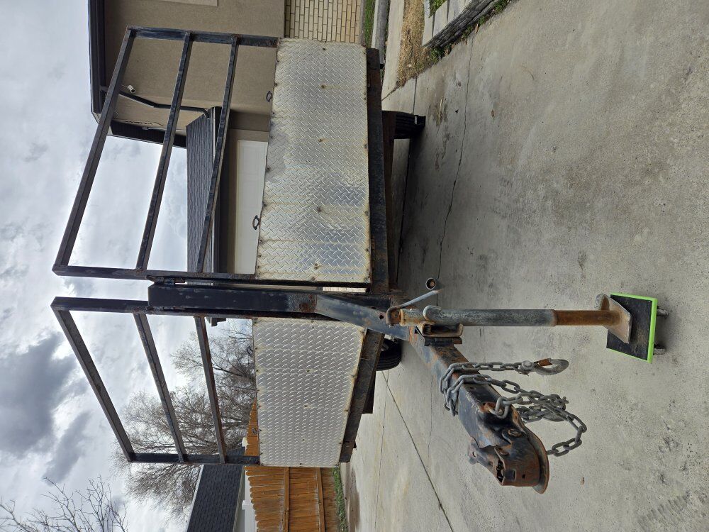 Zelle2 sled snowmobile trailer 8'x13' deck space (17' long with tounge) modified ramp with T handle pin multiple tie down locations trailer has some rust tires in good condition full size spare included