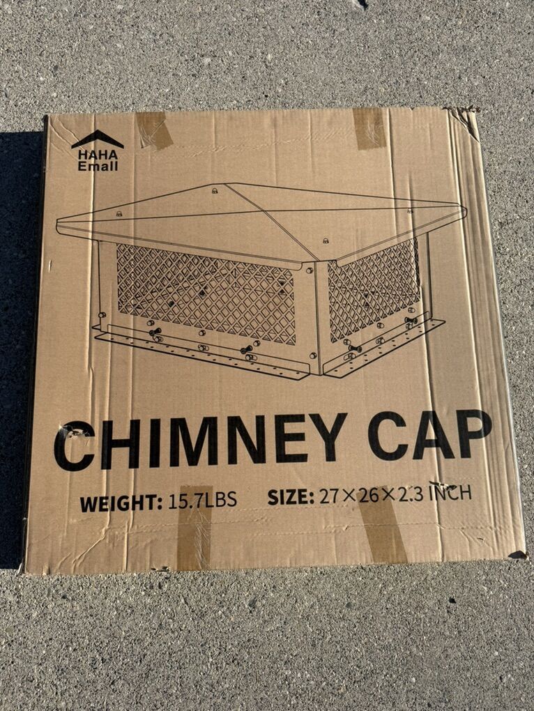 VenmoKeep raccoons and squirrels out of your chimney. This chimney cap is new and never used or mounted. It is black. 27 x 26 x 2.3