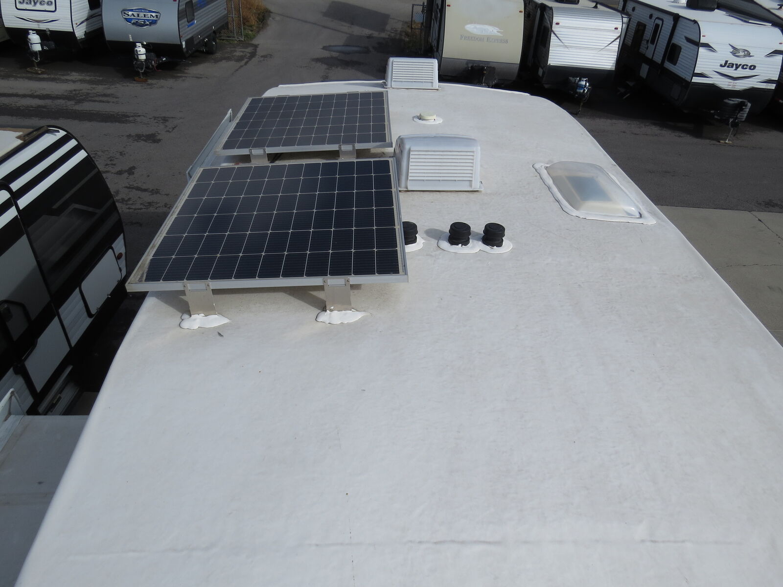 2 Slides, SOLAR!, Side Kitchen, Fridge & Couch Slide!, Rear U Shaped Dinette Slide, Enclosed Underbelly, Wardrobe Slide Out, Couch & Dinette Make Down, Queen Bed, Fiberglass Exterior, Electric Patio awning, Lots of Storage, A/C unit and Heat.