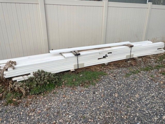 VenmoLeft over rail pieces from when we installed our vinyl fencing. Free to anyone who could use them. Pieces range from appox. 16 ft to 5 feet. Many are damaged or have broken clips on the end. All have at lease one end that has been cut. They are banded for easy transport.