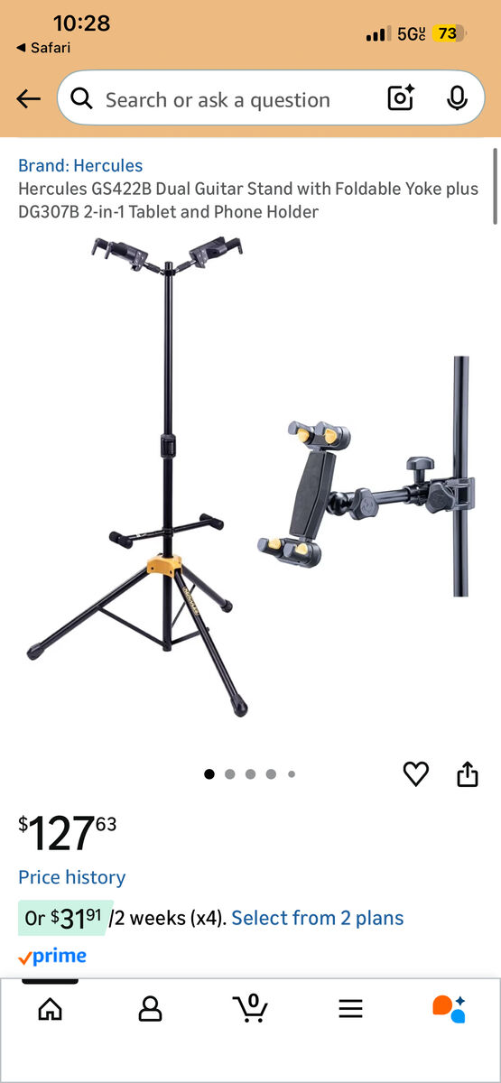 Hercules Dual Guitar Stand with Foldable Yoke and Phone Holder