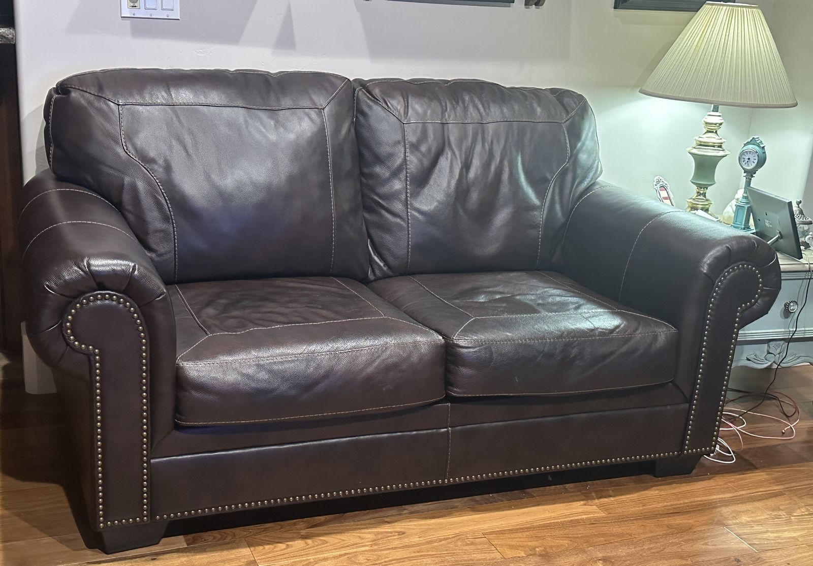 Beautiful leather couch set in excellent condition! Super comfortable with deep seating and great back support. Clean and very well cared for.