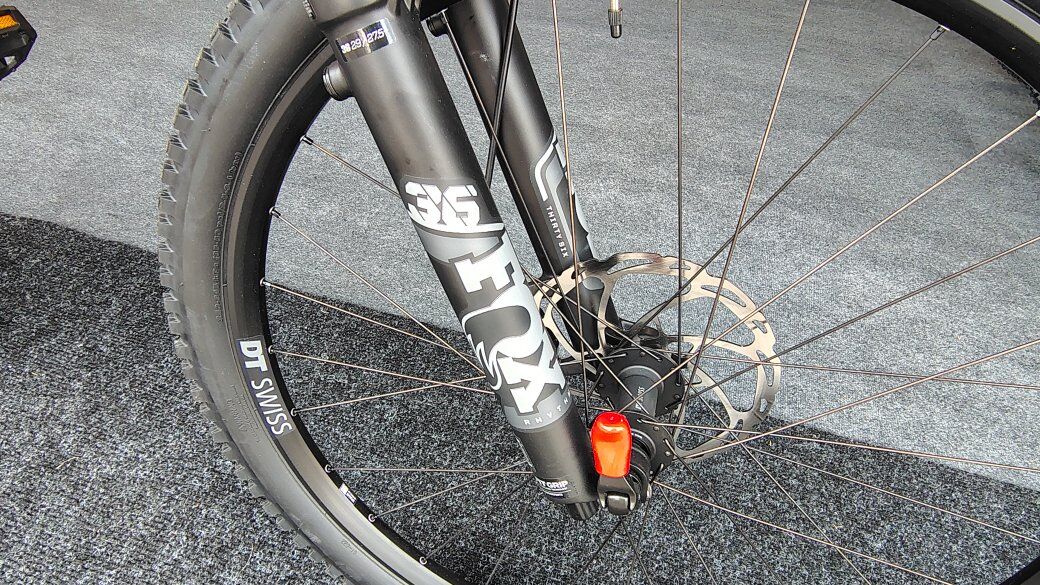 Fox performance Float X shock, 150mm travel Fox rhythm 36 fork, 150mm travel Shimano Deore brakes DT Swiss wheels, tubeless ready 29 inch Maxxis tires Frame size is Large Color Dark Honey, looks awesome