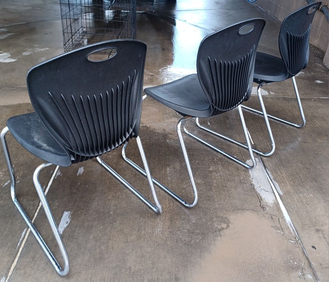 VenmoMeasures 19 Inch seat height and 16 wide where you sit and 17 1/2 Wide at crome frame base and 21 3/4 deep as well. Clean and work well, comfortable. Easy to move around (has grab handle) durable Feel free to call or text Generally working nearby