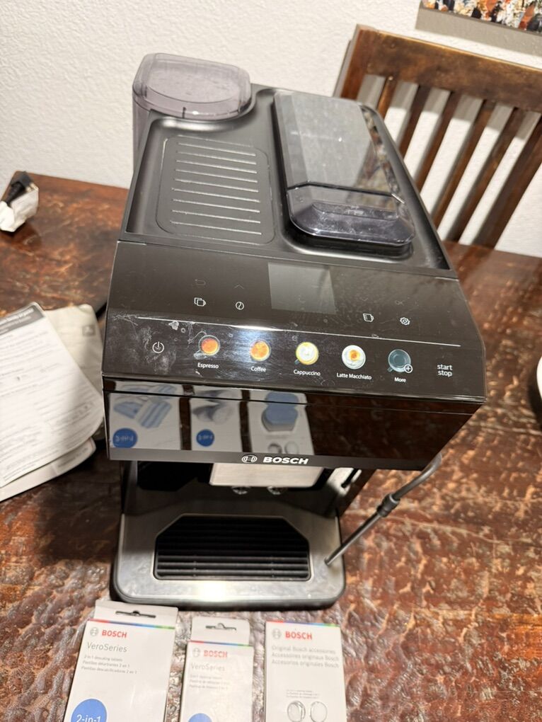 ApplePayBosch 500 Series Fully Automatic Espresso and Coffee Machine – Touch Control Panel, Milk Hose, Ceramic Grinder, Uses Beans & Ground Coffee, 9 One-Touch Drinks, in Black TPU40109