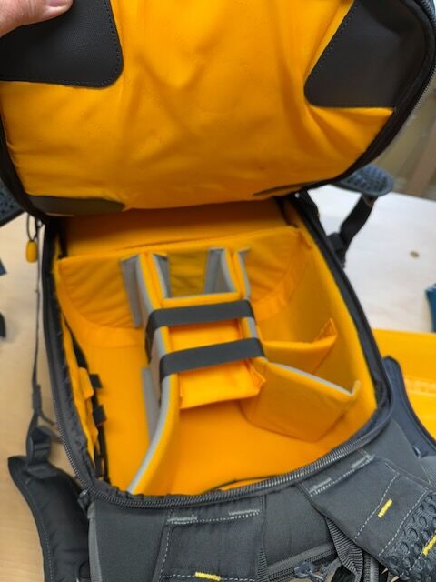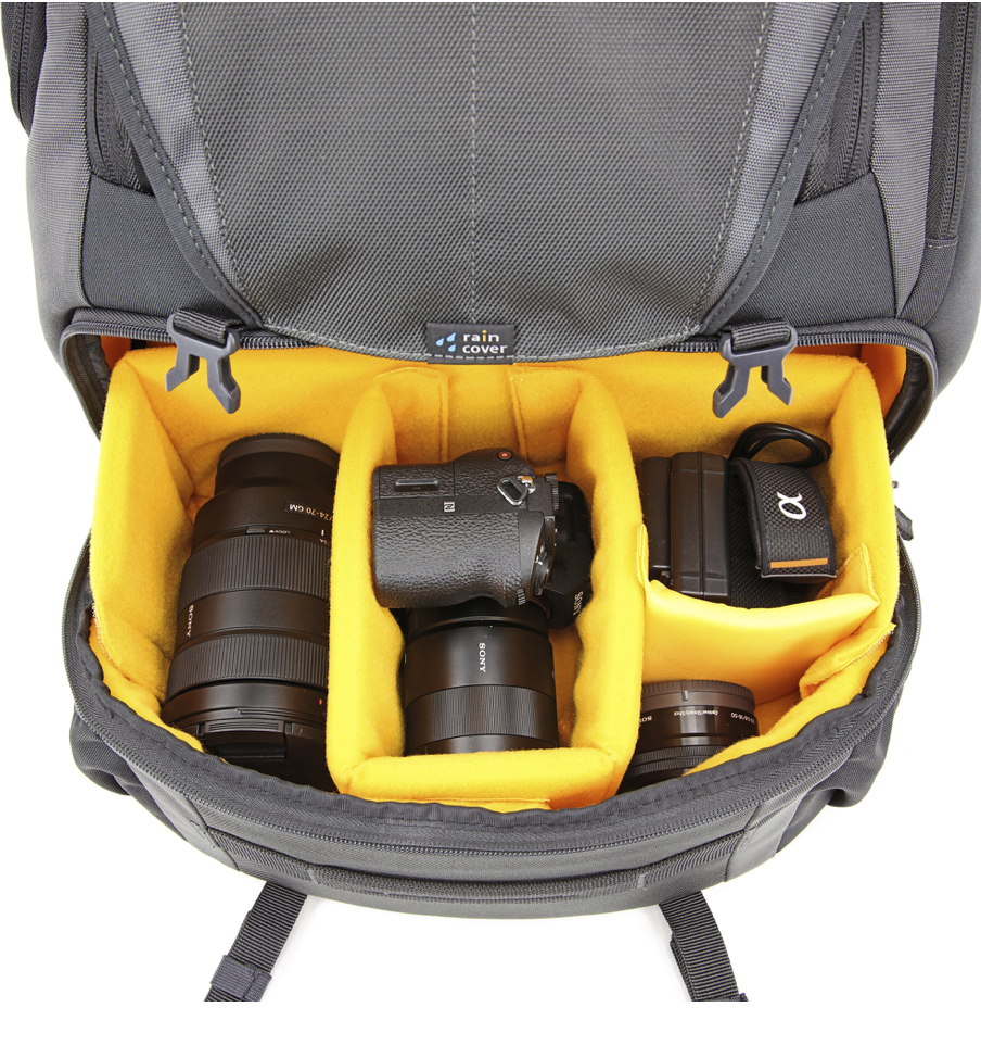 The Vanguard ALTA SKY 51D is the ultimate gear-carrying and working backpack. Featuring innovative 1/3-2/3 division the versatile set-up will allow you to decide just how much backpack capacity and how much daypack storage you need. Max storage can fit up to 1-2 Pro DSLRs with attached lens (up to 70-200mm f/2.8), 3-4 lenses, a flash and accessories, or a drone with all related accessories.
