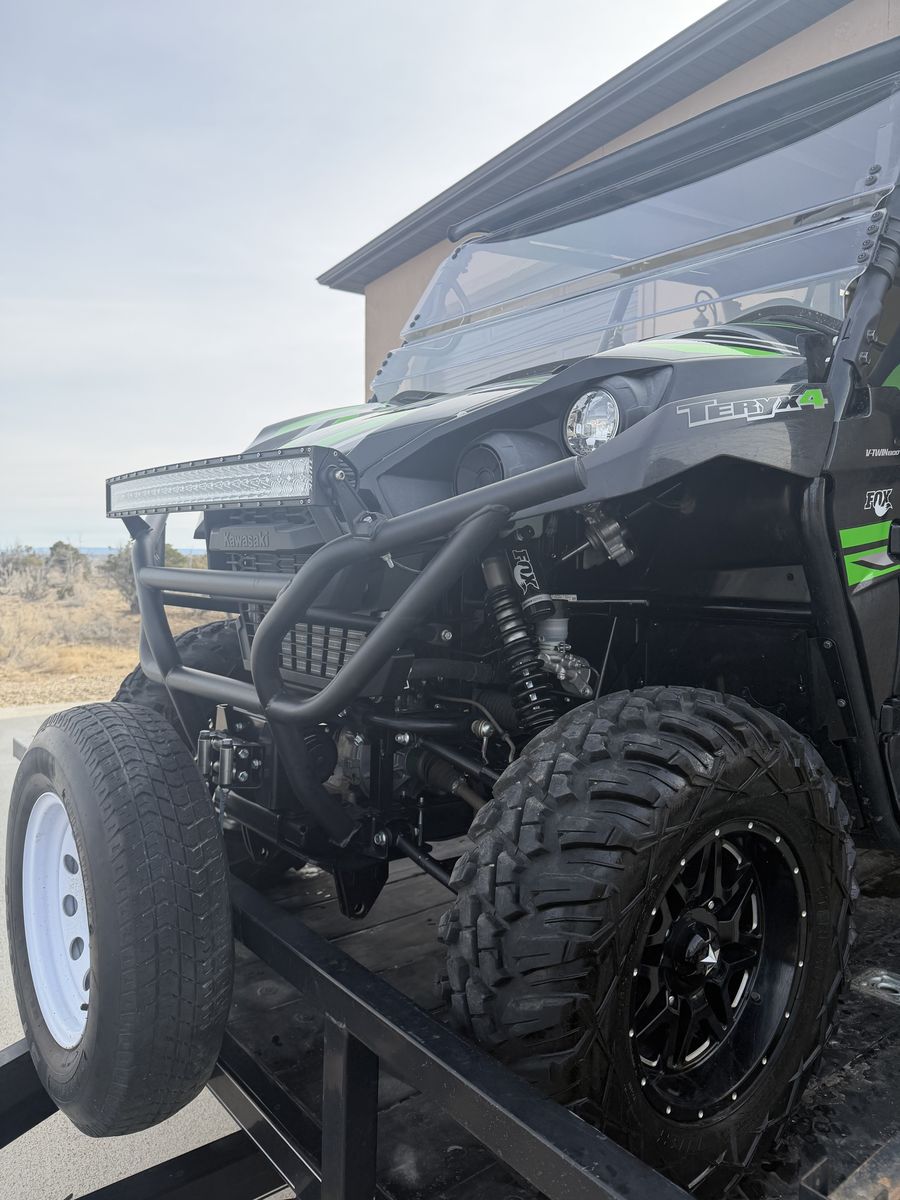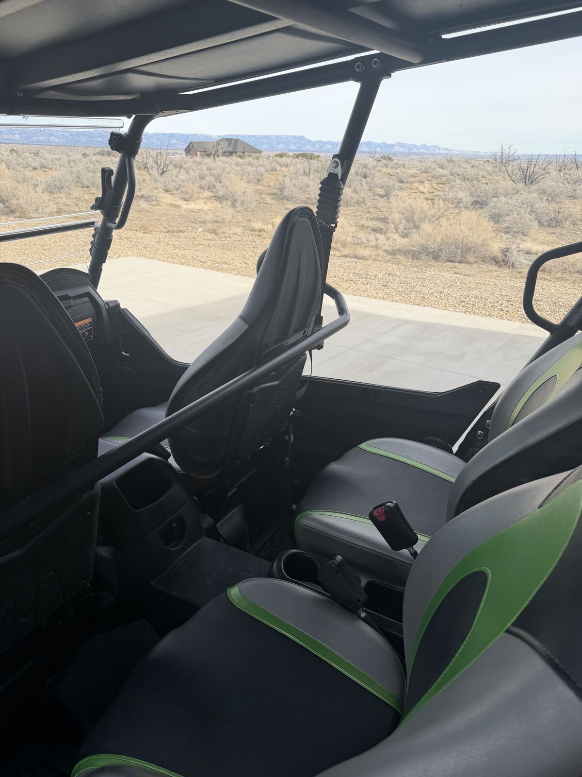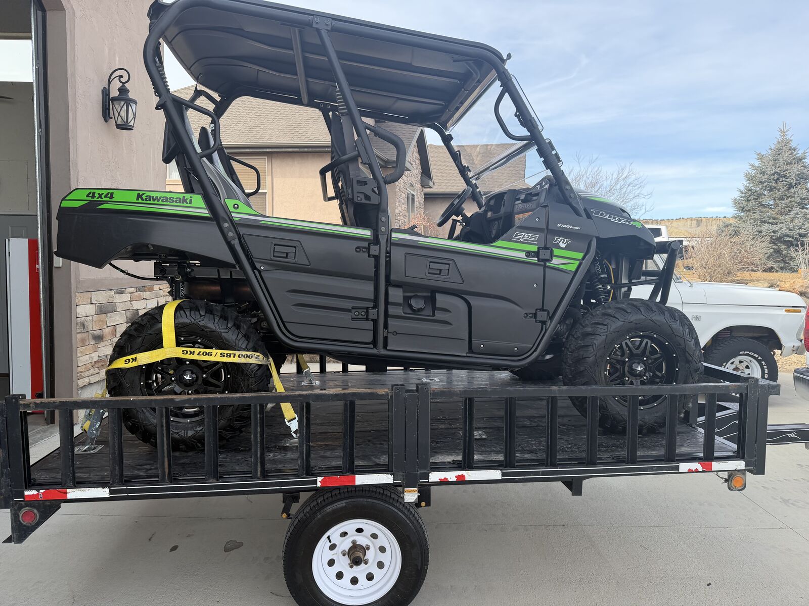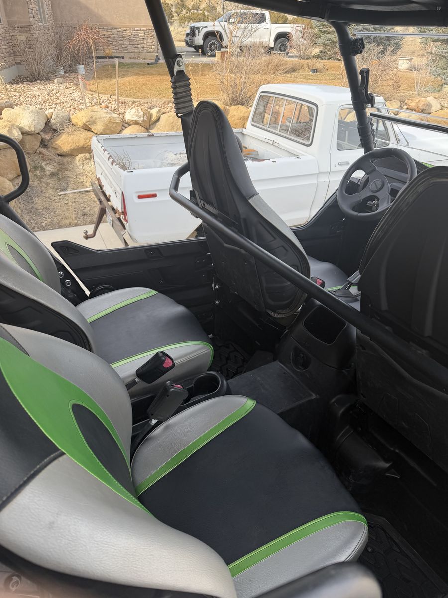 4 seater side by side. Runs great. 2,577 miles. Has new larger tires, light bar, front windshield and winch. Comes with trailer and snow plow blade. Text or call with questions! 435-650-4866