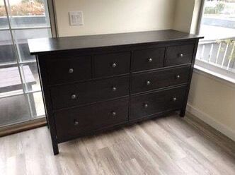 CashAppDresser from Ikea — Black-Brown Color 8 Drawers In excellent condition, Fully assembled Measurements: Width: 63 (160 cm) Depth: 19 5/8 (50 cm) Height: 37 3/4 (96 cm) Drawer denth (inside): 16 7/8