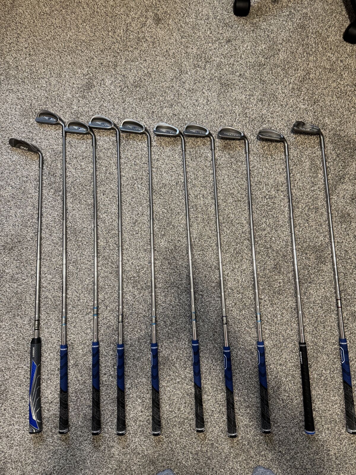 All of the clubs and their faces are in good condition. Most of the clubs have been re-gripped. I am also including a new bag of golf tees. I am selling because I thought I had time to go, but never did. This would make a great starter to intermediate set.