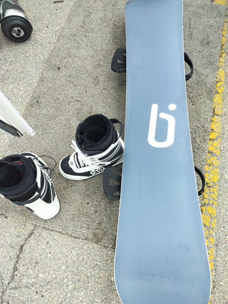 I have a 62" 'Blank' snowboard with Burton bindings and some size 12.0 mens 32 boots.