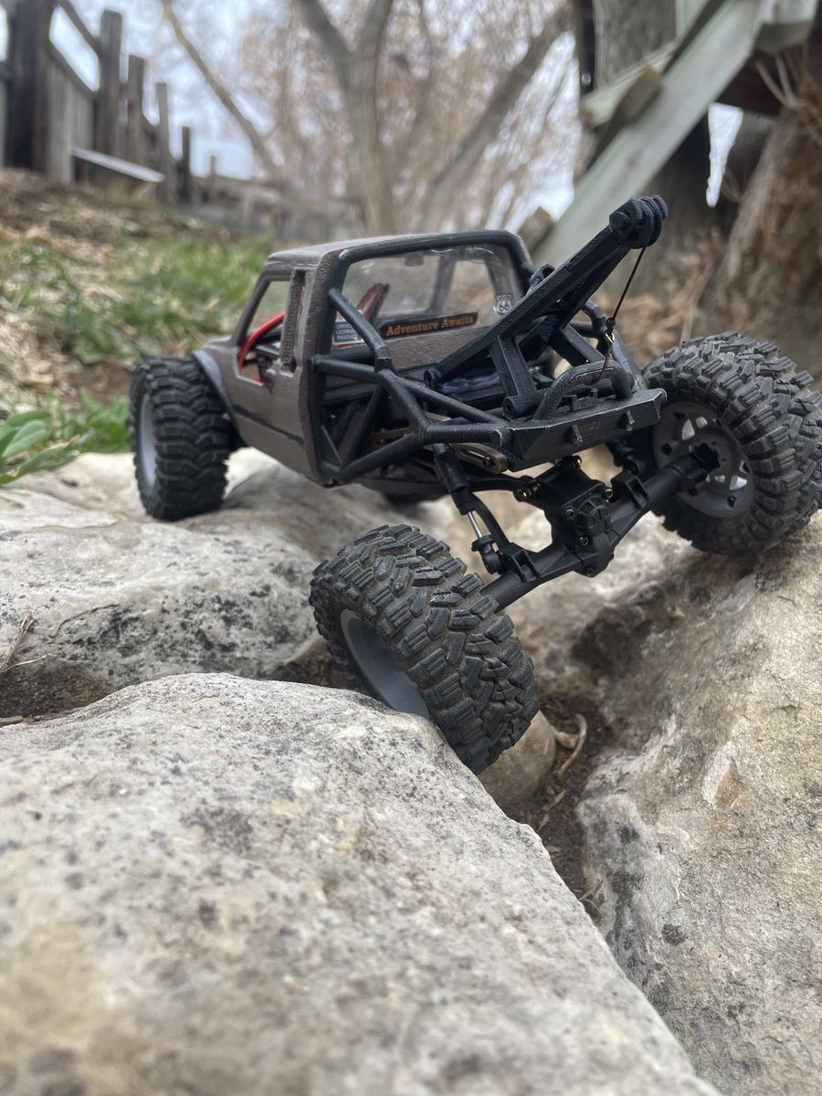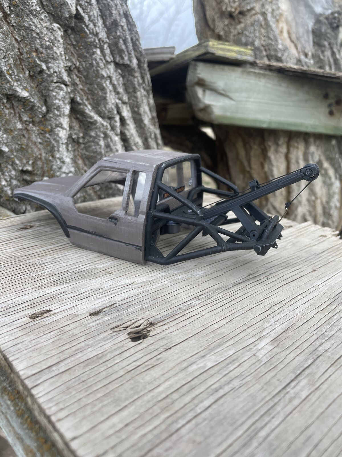 For sale I have a scx24 truggy. I built it a while ago but don’t use it to much because I have other rigs. It has a 3d printed truggy body with a wrecker boom. The upgraded parts on it include: -brass knuckles -injora all terrain tires -high clearance links double bent and outboarded -brass hex extensions -3d printed 1.3 rims -3d printed yepspec chassis Will come with battery and controller. This rig performs great and runs smooth. Message me with any questions.