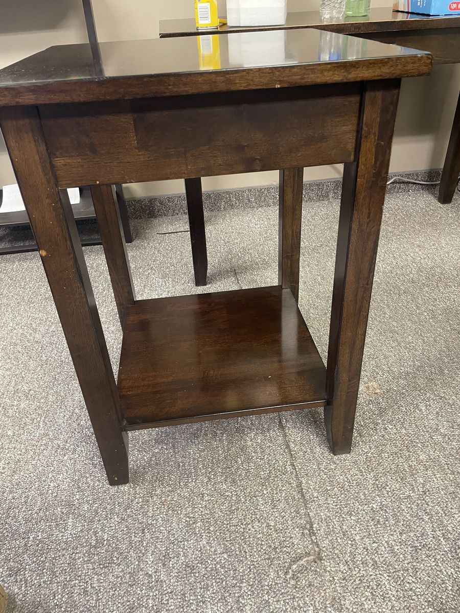 2 - Office shelving units - multiple shelves and a drawer for files. 2 - side tables 2 - desks