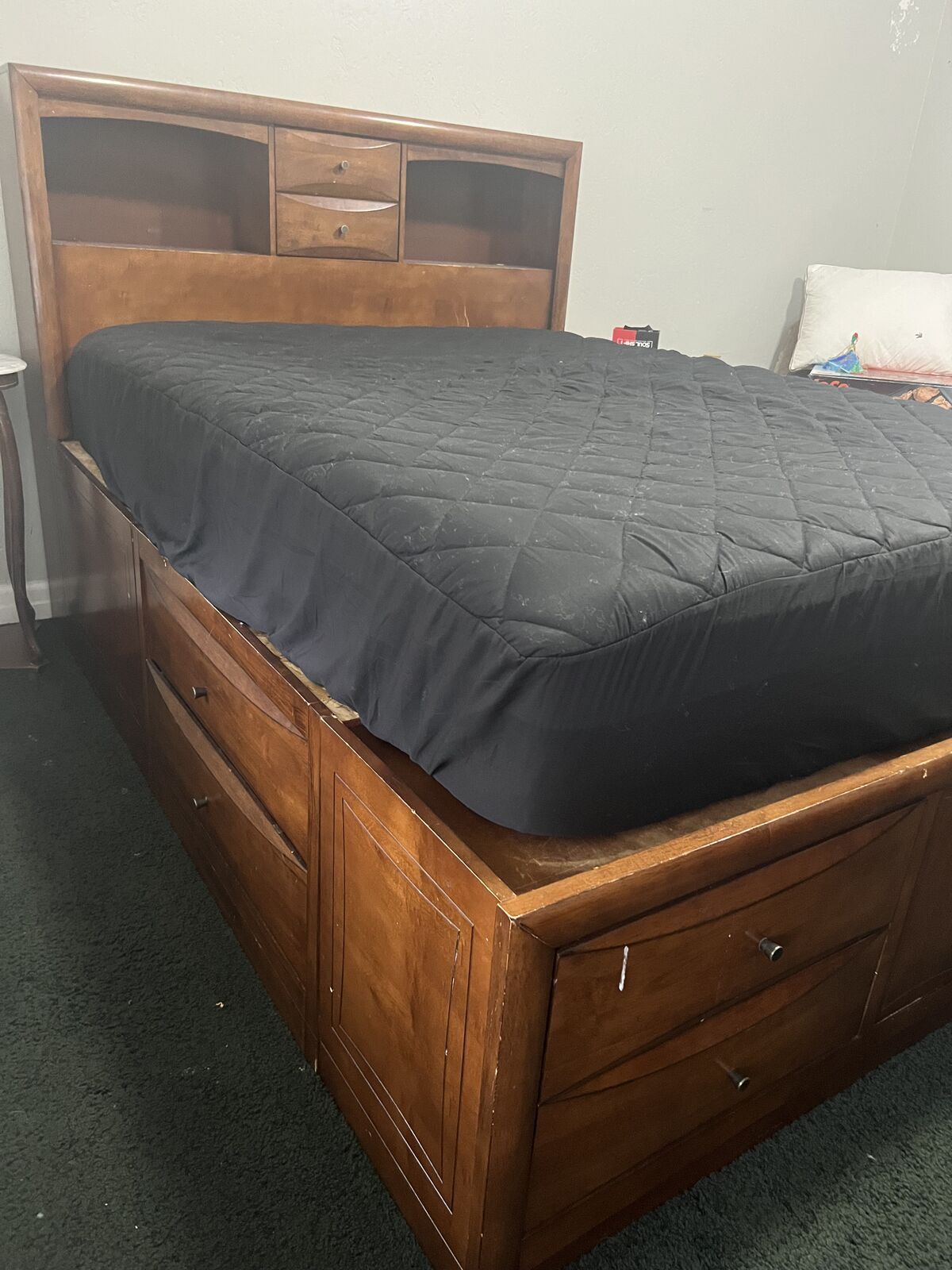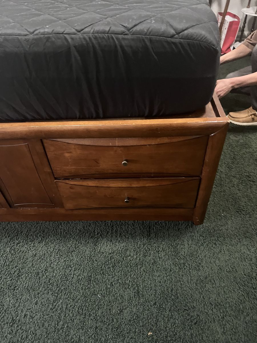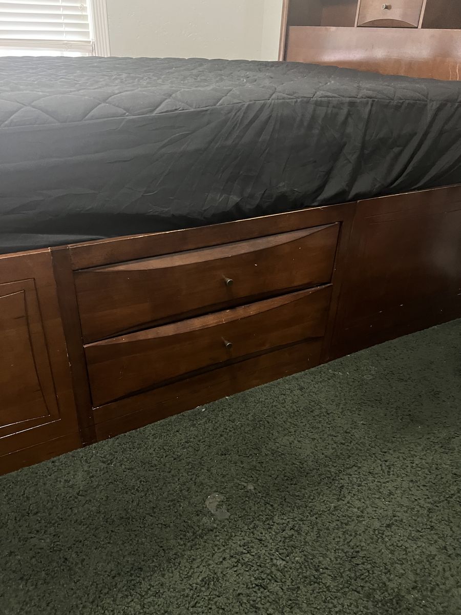 VenmoThis bed is solid. It has drawers on both sides and at bottom of the bed. it has two small drawer on headboard. It doesn't come with mattress.