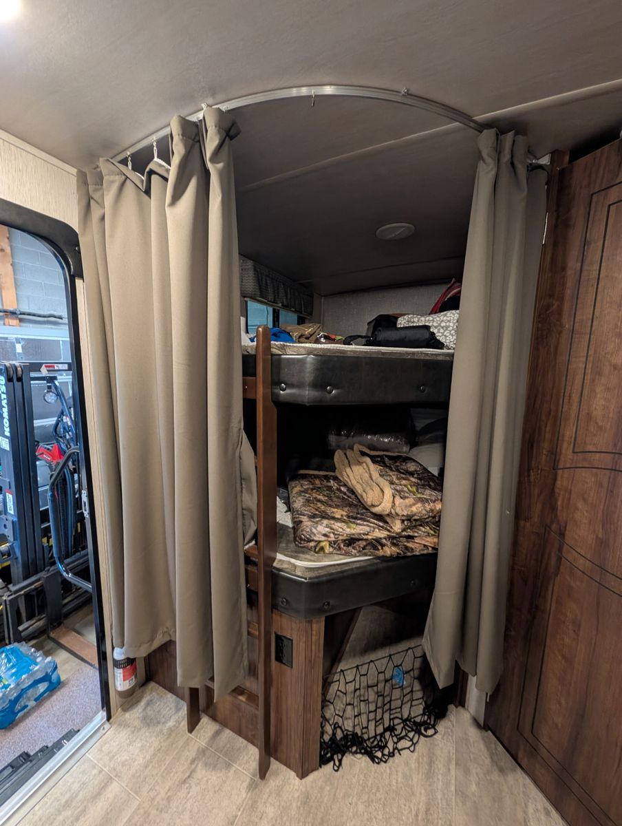 Better than new! This barely used, bumper pull camper has the solar already added. Never used bunks, never opened outdoor kitchen, never used central vac. all maintenance done at dealer, winterized every year and stored indoors. Washed and buffed regularly, no rust. Added stair handles, never had any kiddos inside. Everything is like new. She Rides beautifully, and soooo much fun. Looking to downsize because it’s only me. Make me an offer!