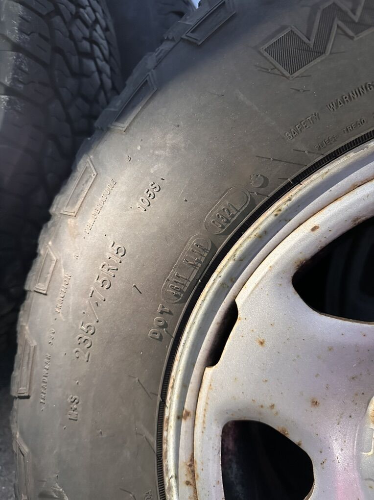 VenmoThese came off of a 1996 tacoma. 6x5.5 steel wheels with 235/75r15 tires. One tire is mismatched but the same size and one tire has some inside wear from a bad alignment. They all hold air and have plenty of tread left.