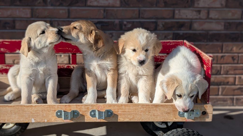 These pups have such fun personalities! They are being raised with lots of care and attention. They’re playful, curious, and love playing with our kids. This mix combines intelligence, loyalty, and a gentle, protective nature.