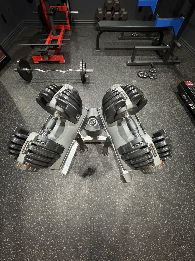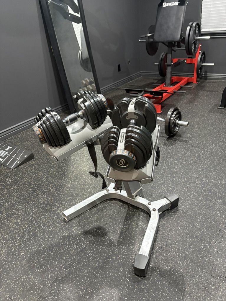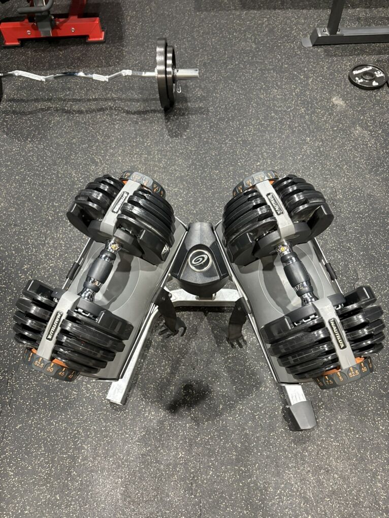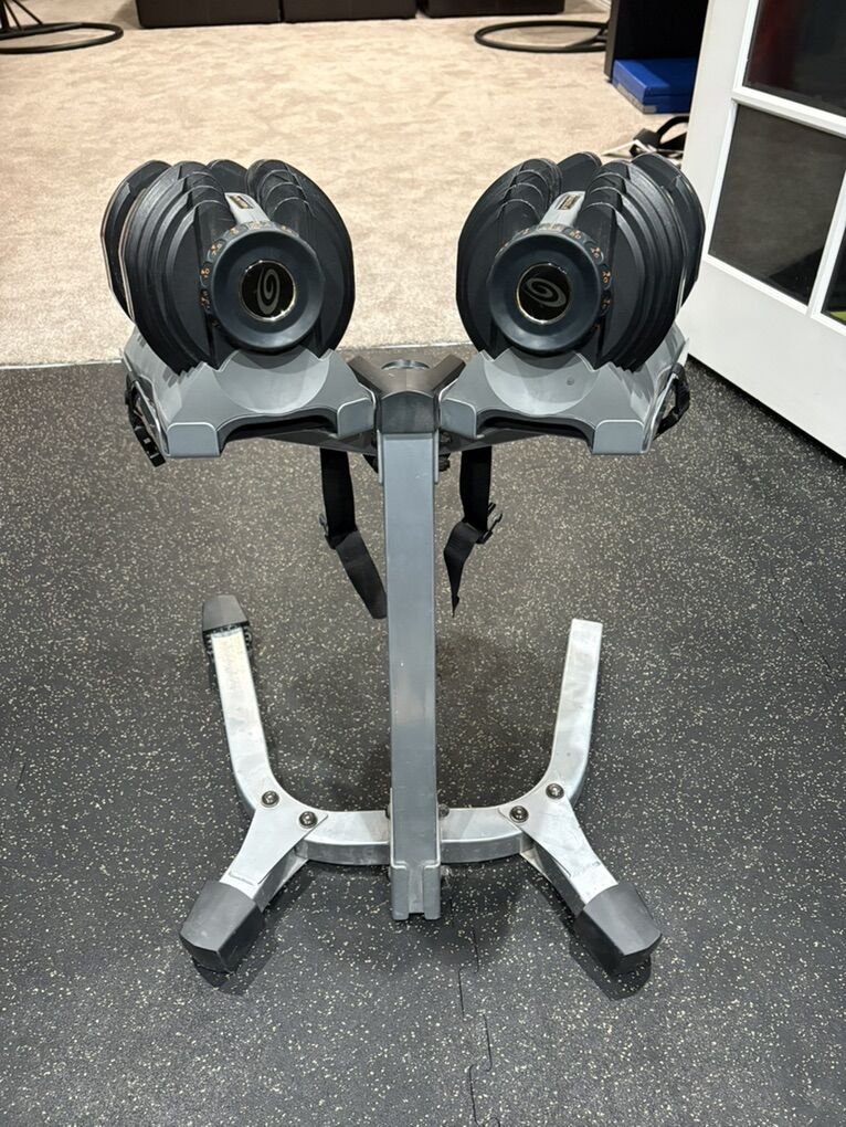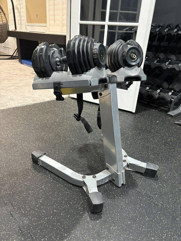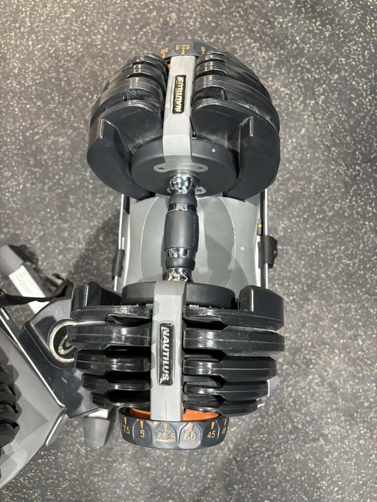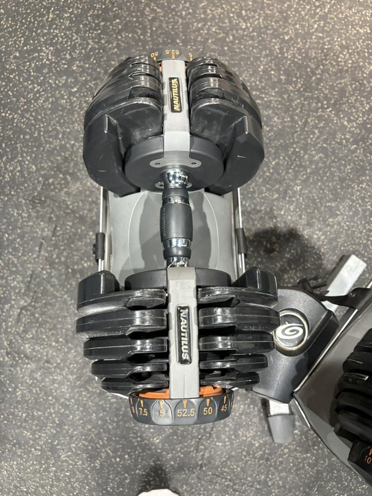 VenmoVersatile Nautilus adjustable dumbbells. Each dumbbell has a weight range from 5 to 52.5 lbs. Comes with the matching stand. Great for home workouts, saves a lot of space compared to a full rack of weights.