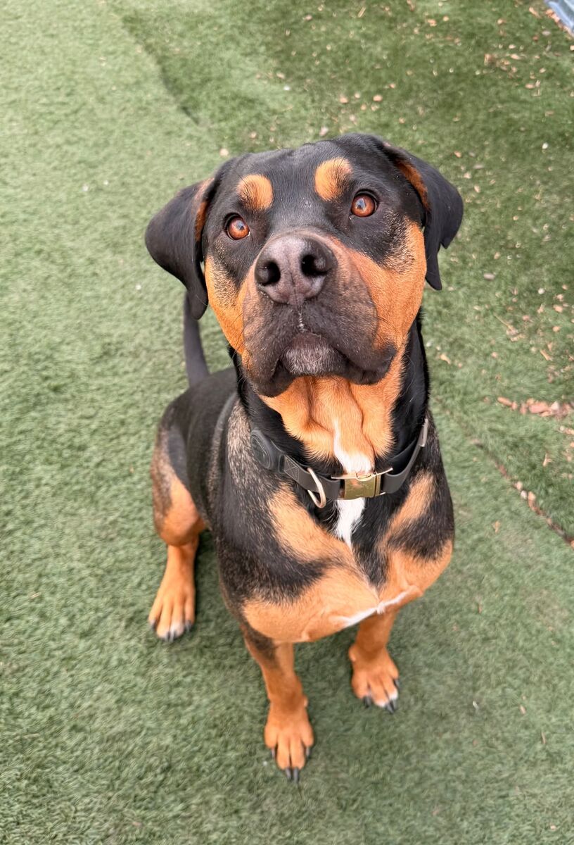 Don’t let the name fool you — Tank is one of the sweetest, most gentle dogs you’ll ever meet. This handsome, lovable 3-year-old Rottie mix is a total cuddle bug who just wants to be close to his people and soak up all the love he can. He’s the kind of dog who naturally fits your lifestyle — ready for adventure when you are, and just as happy relaxing by your side.