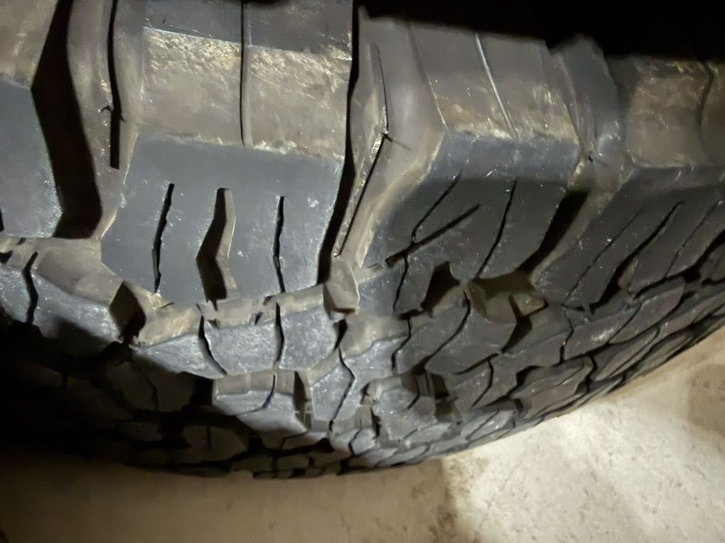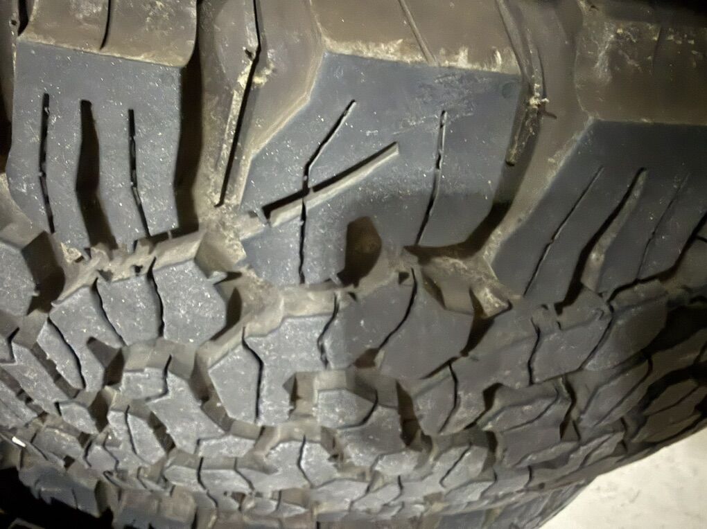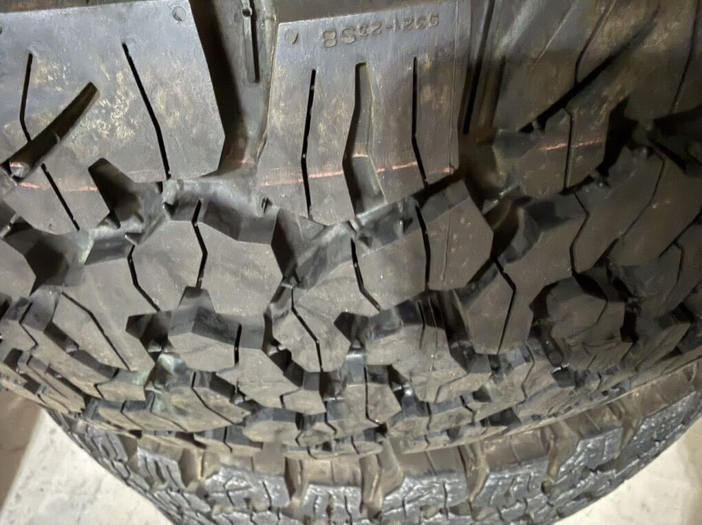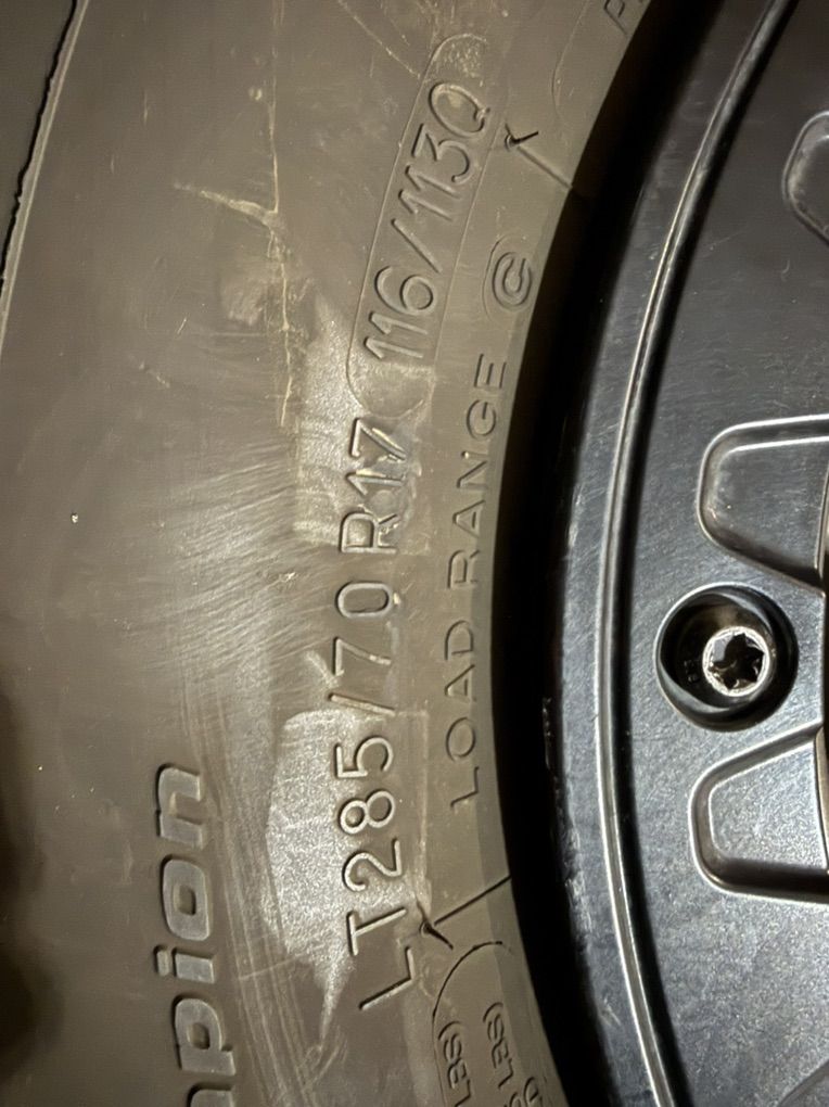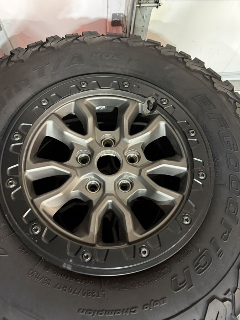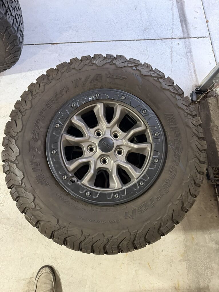 VenmoTire size is 285/70/17 (BFG KO2) 5 wheels. Rims are genuine factory Mopar rims. Both in excellent shape. Not too many miles on them.