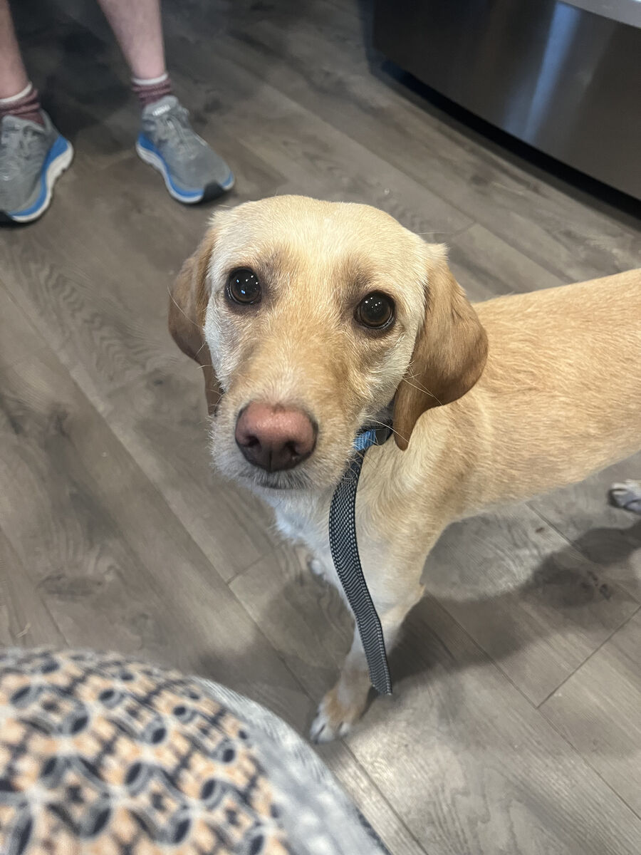 She can be a little timid at first, but give her a little patience and love and she warms up beautifully. Once she trusts you, she is all heart. Mabel blends into the pack with ease and gets along wonderfully with everyone — including the four-legged felines in her foster home