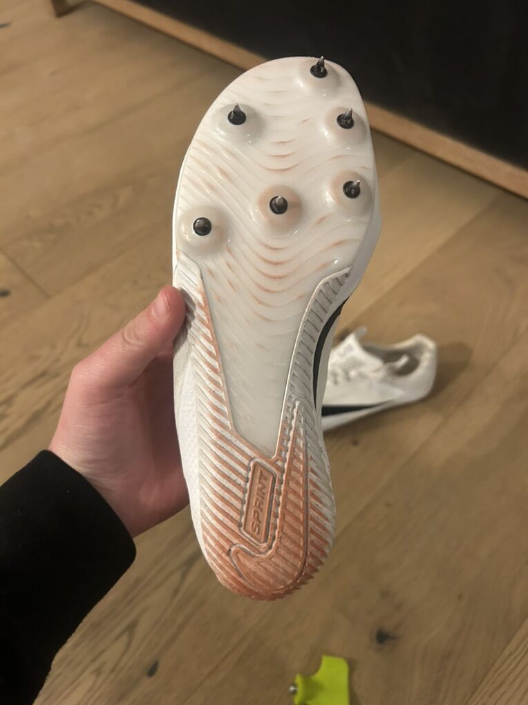 PayPalSize 6 Used for one practice, spikes are still in perfect condition. Daughter tried out for track but then didn’t continue. Has a bag to hold the shoes and a spike applying tool. Honestly they are brand new, used (with socks)