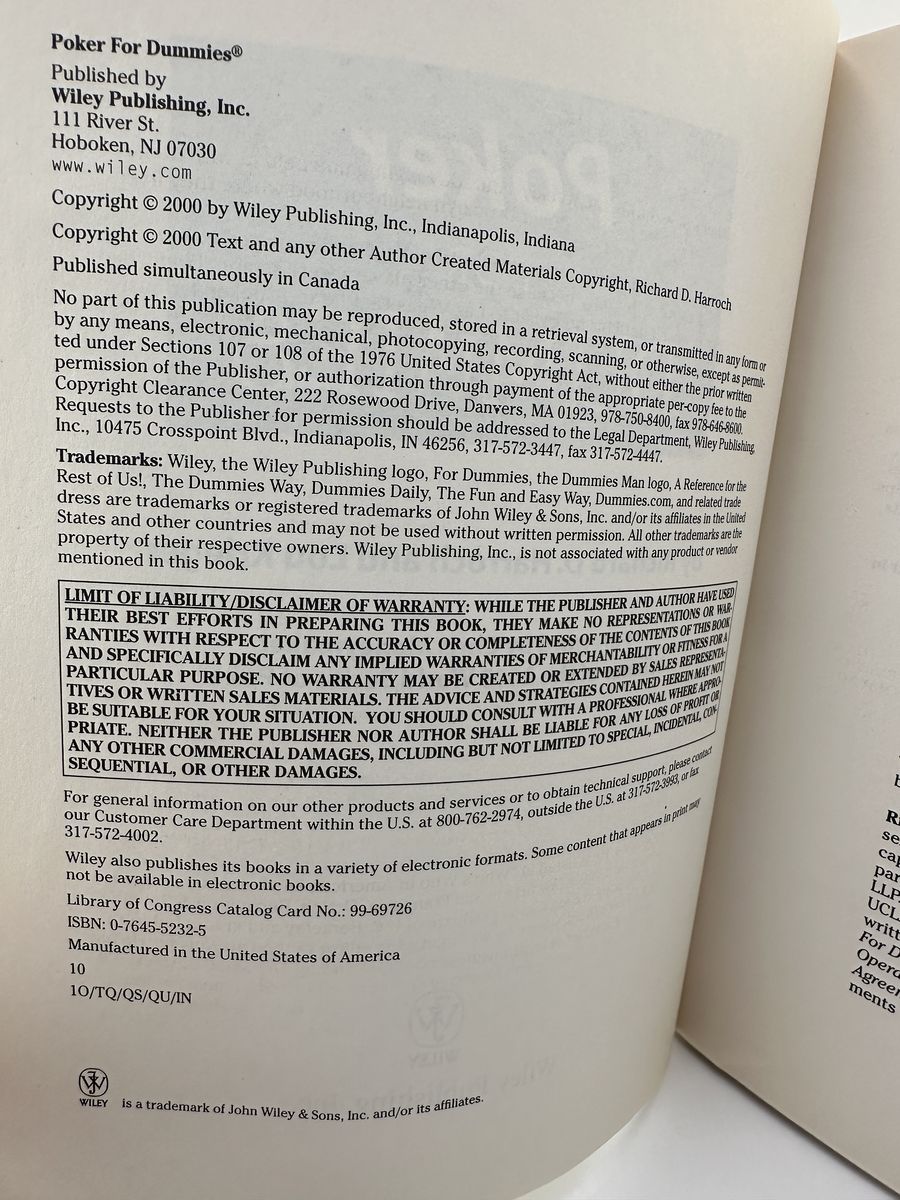 ApplePayPoker For Dummies by Richard D. Harroch & Lou Krieger. 2000 Wiley paperback edition. Beginner poker strategy guide.