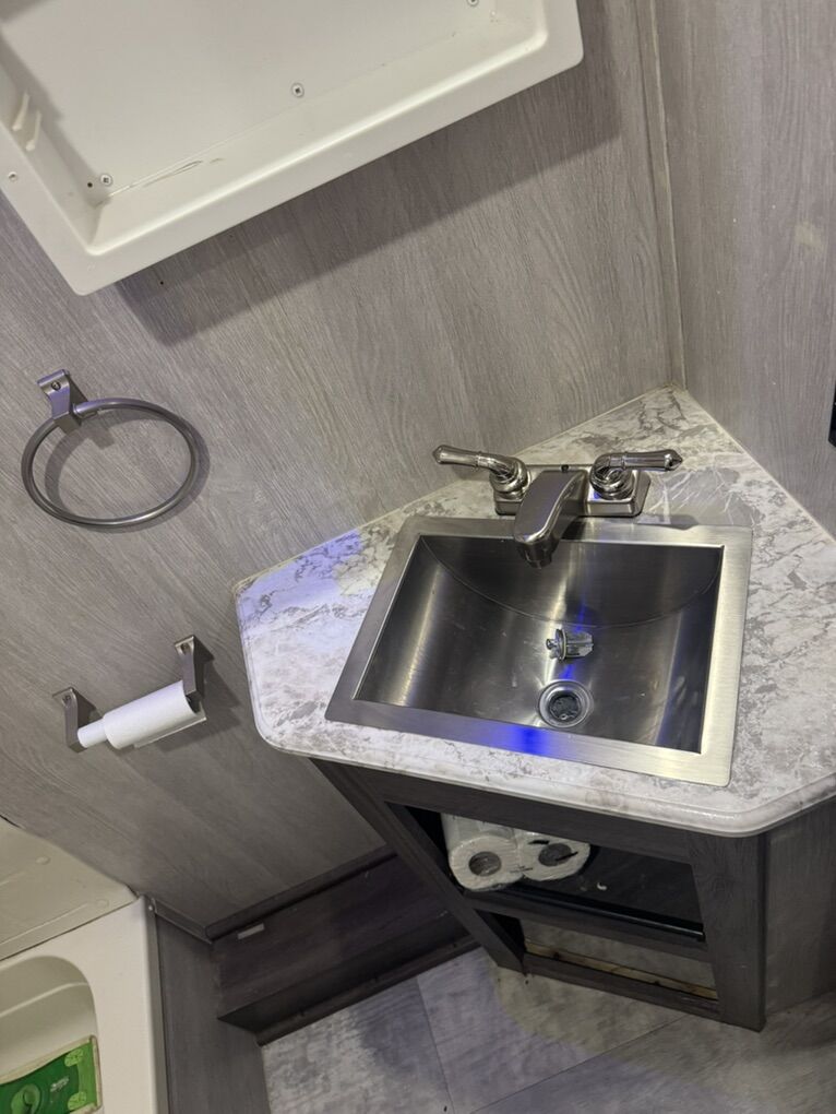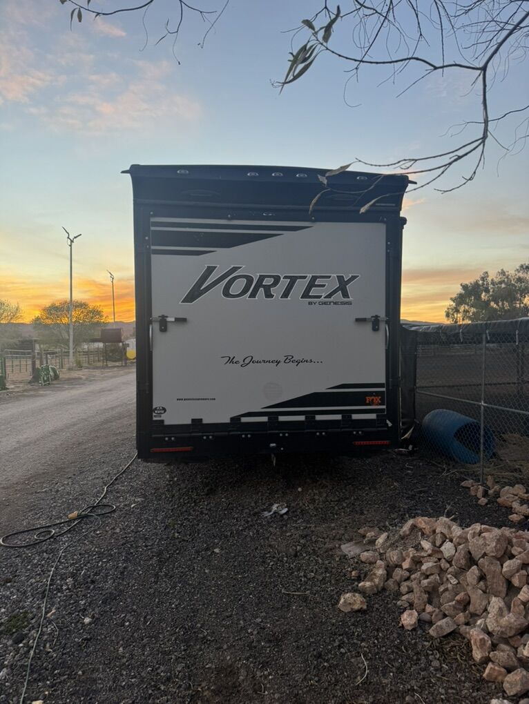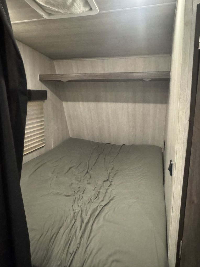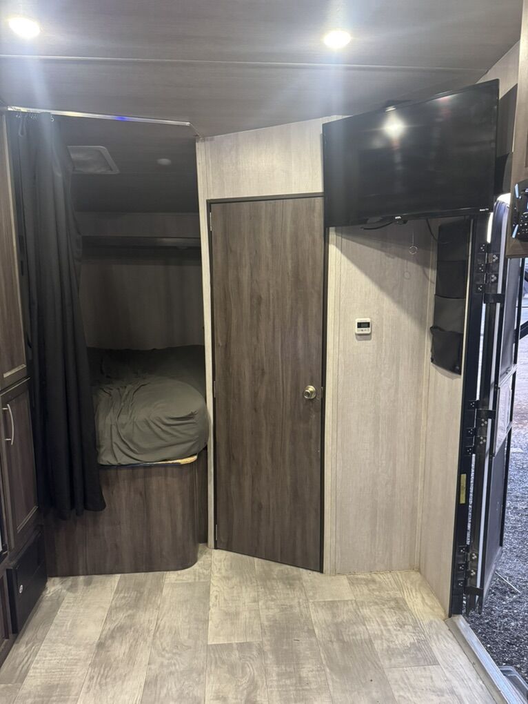 Great trailer! I’m the original owner, bought new in 2021. My family is just out growing it. It fits a 2 seater side by side very well and also fits a 4 seater but it’s a little tight. New toilet just installed. It has a 100 gal fresh water tank. 3 beds. Call or text with questions.