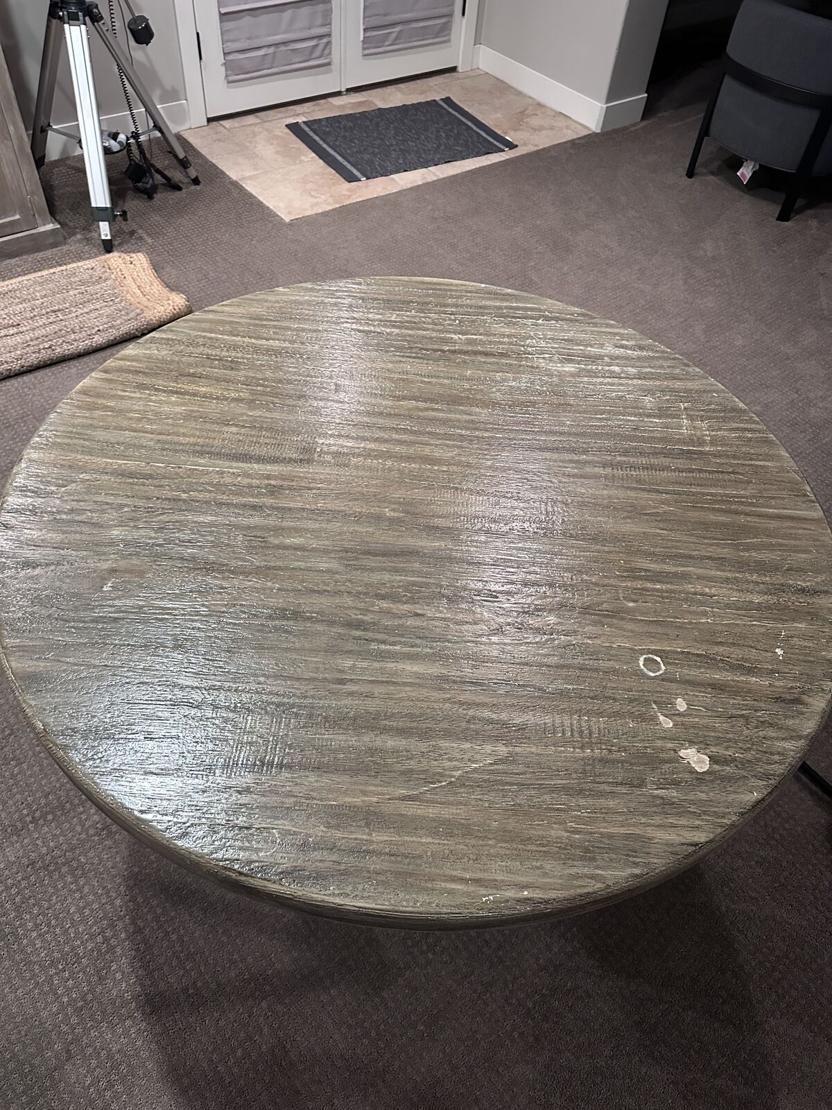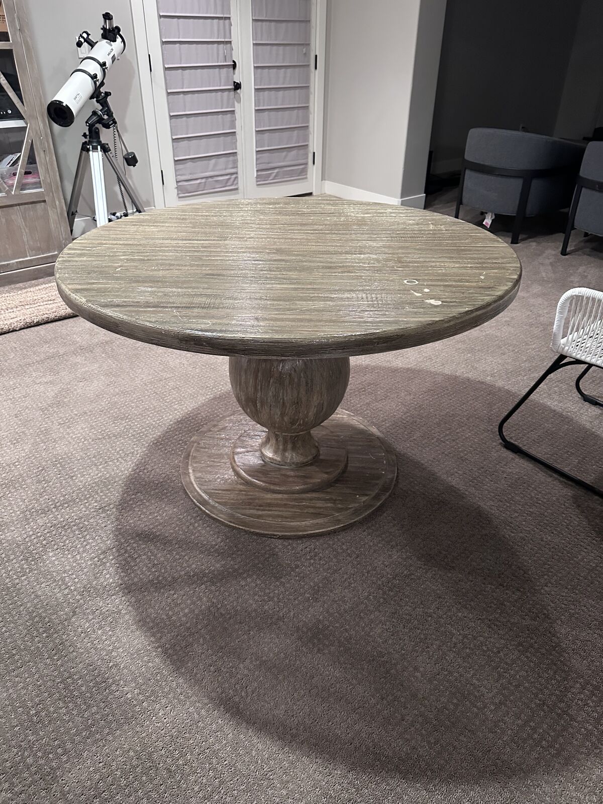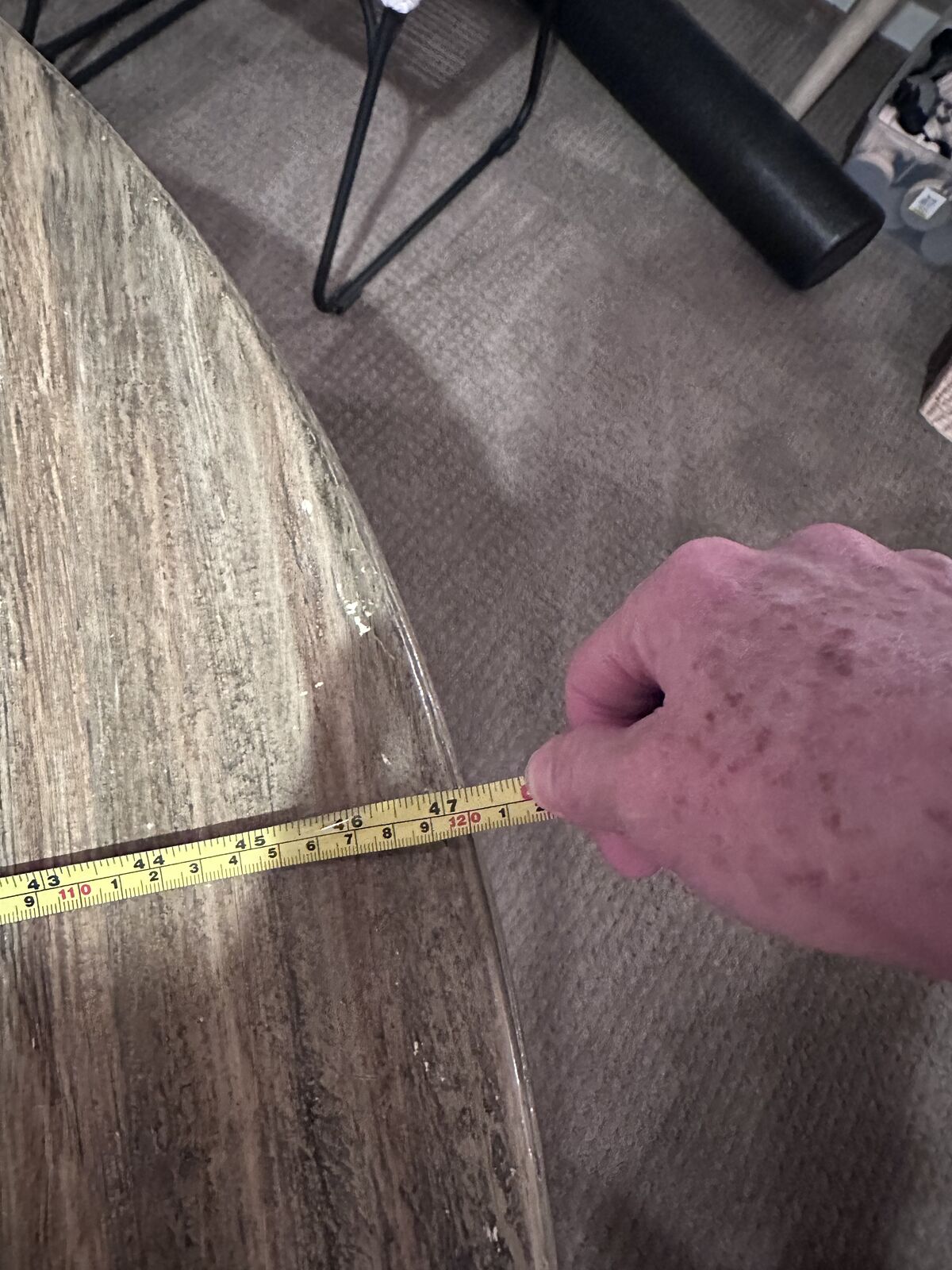 VenmoMeasurements in the pictures. Some paint damage on the top of the table and some scratches. The table is in wood.