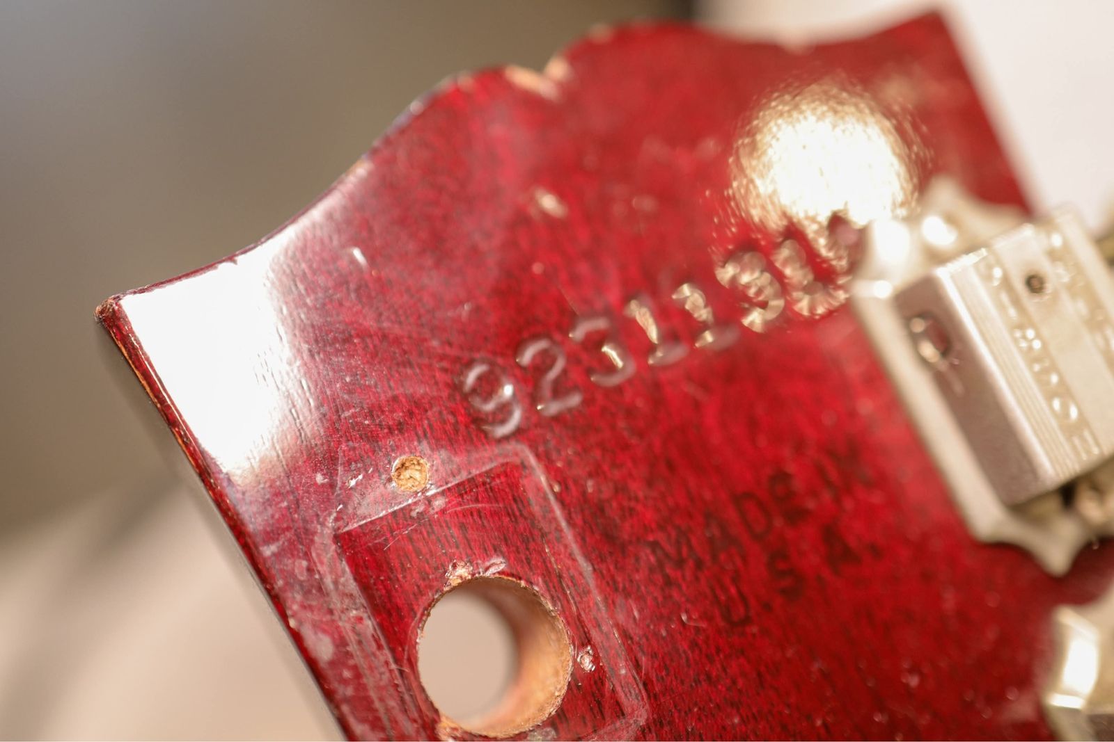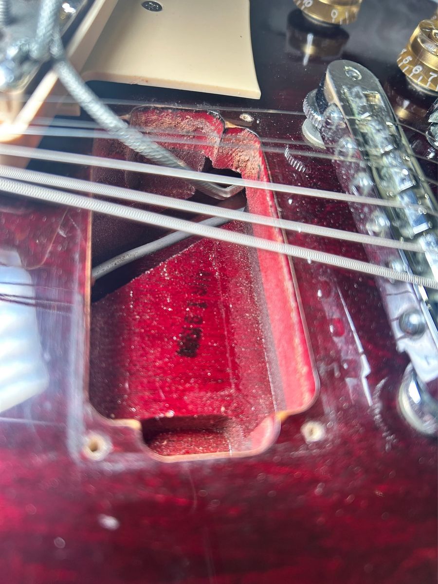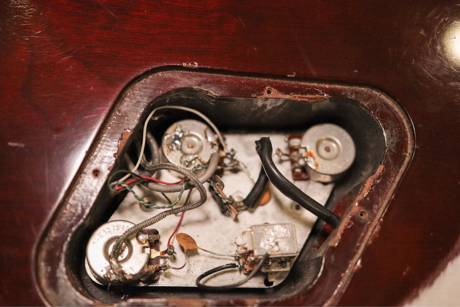 Great classic Les Paul feel and sustain. Nice top figuring under the Wine Red finish. Honest play wear consistent with age. No breaks or repairs.