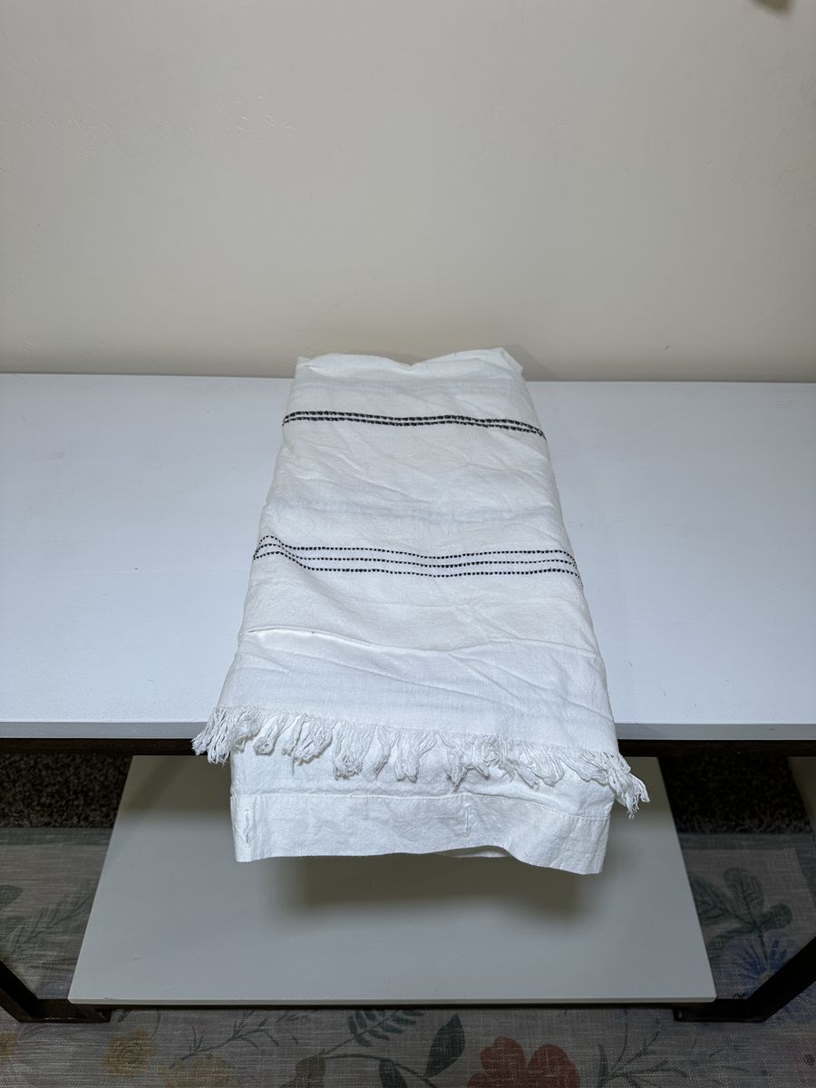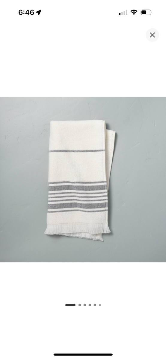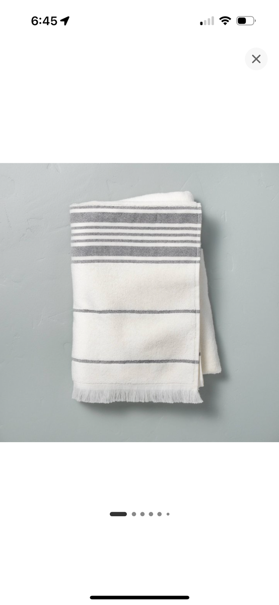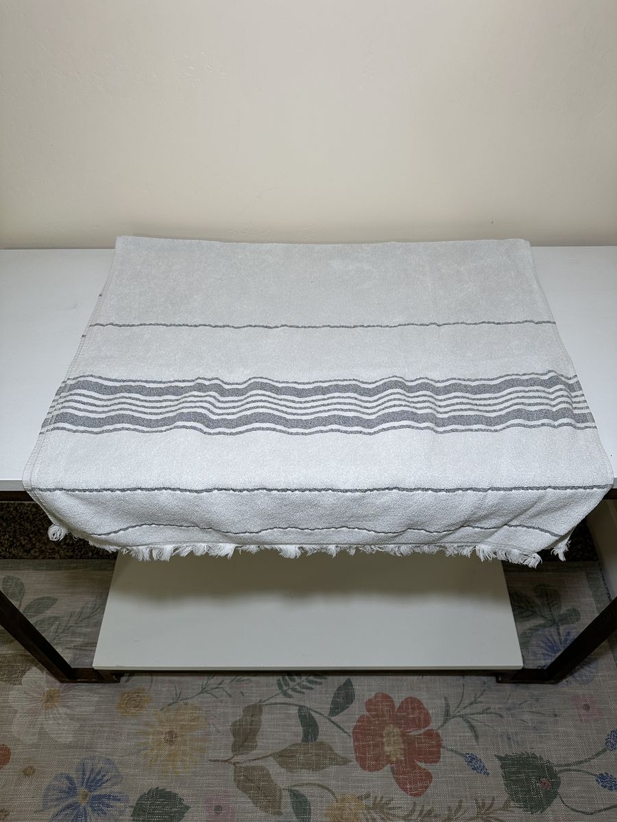 All items are used but clean and in great condition. No stains or damage. The neutral color and classic stripe pattern work with almost any bathroom style — modern, farmhouse, minimalist, etc.