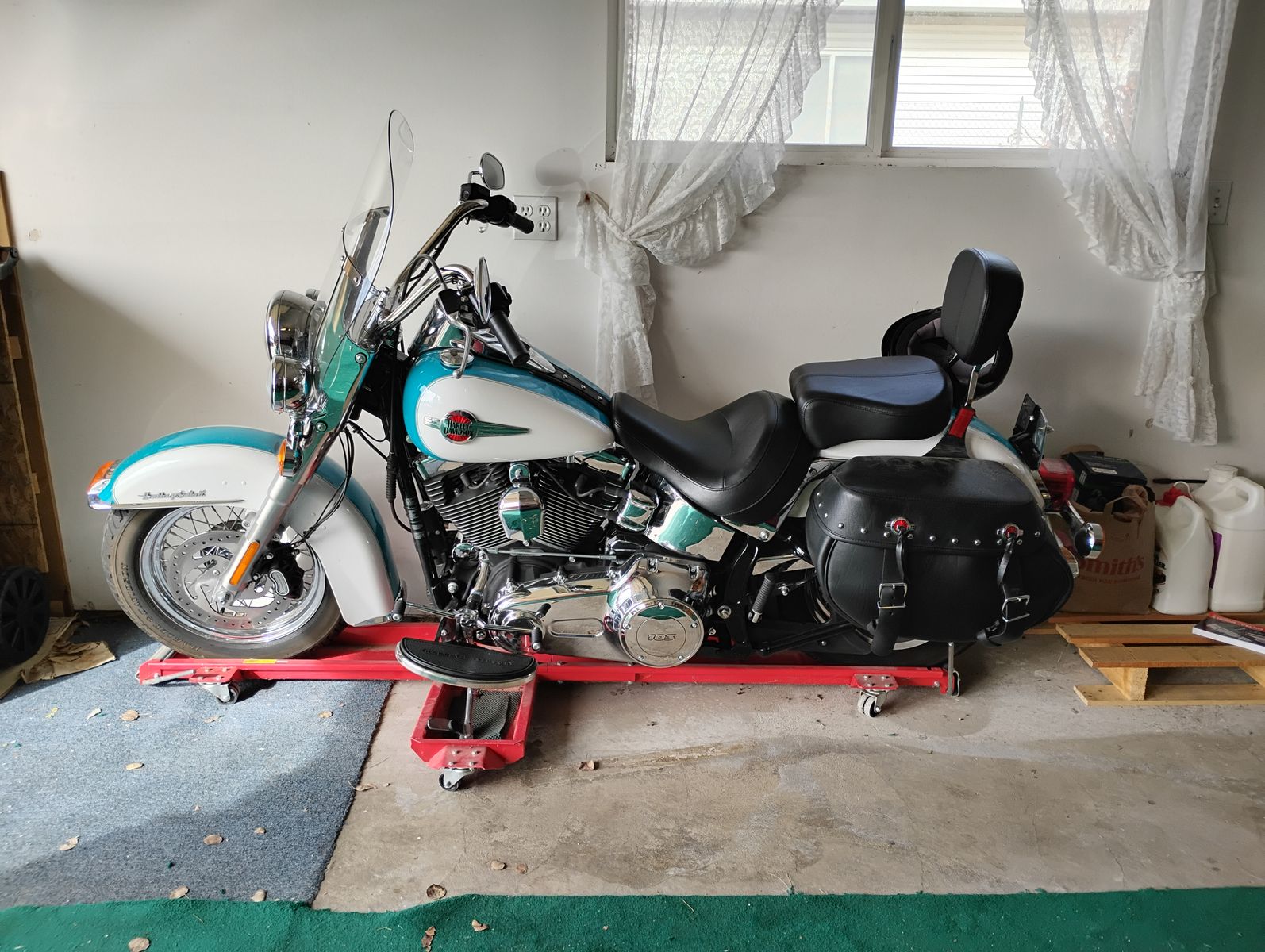 2016 heritage Softail only has less than 10,000 miles on it. I need to sell. Find a new good home for it because I can't ride it anymore and it just sits in the garage. Needs someone who will ride it and take good care of it. She's a beauty and is kept well still looks like new. It's got a two tone paint white and pretty turquoise 🩵. I've kept up on maintenance on it, it looks good rides good and sounds great. It has a dolly it sits on and is out of the way from everything else in the garage. It has the original seat to it also. It is out in the Clearfield area and I live in salt lake City so I would have to make arrangements to go out there to show it to you. It has the 103 two stroke motor which is a 1660 cc six speed.