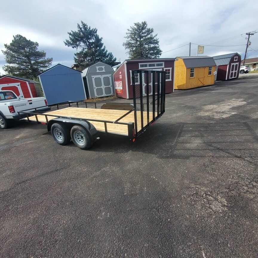 Black Powdercoated Rear Ramp 205/75R 14" Radial Recessed Lights Swivel Jack Tie Down Loops Lighted License 3500 Lb Axle Greasable Spindles Tailgate L.E.D. Lights Mountain Tech Motorsports/Trailers 5551 West 5500 South, Hooper Ut 84315 Shawn Keller 801-309-8290