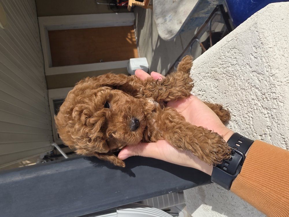 These Puppies are ready to go! These guys will come with toys, pads, food, there health record, and a blanket with moms scent for an easy transition. They have been vet checked, had there first vaccination, and deworming done. Mom is our 8lb Champion bloodline Akc Toy poodle. Dad is our 6lb Cavapoo stud. both parents are healthy and beautiful, with an adorable teddy bear feature. These puppies are estimated to weigh between 6-7lbs. Come meet them anytime, you'll fall in love with there cute faces! Parents pictures are in the end.