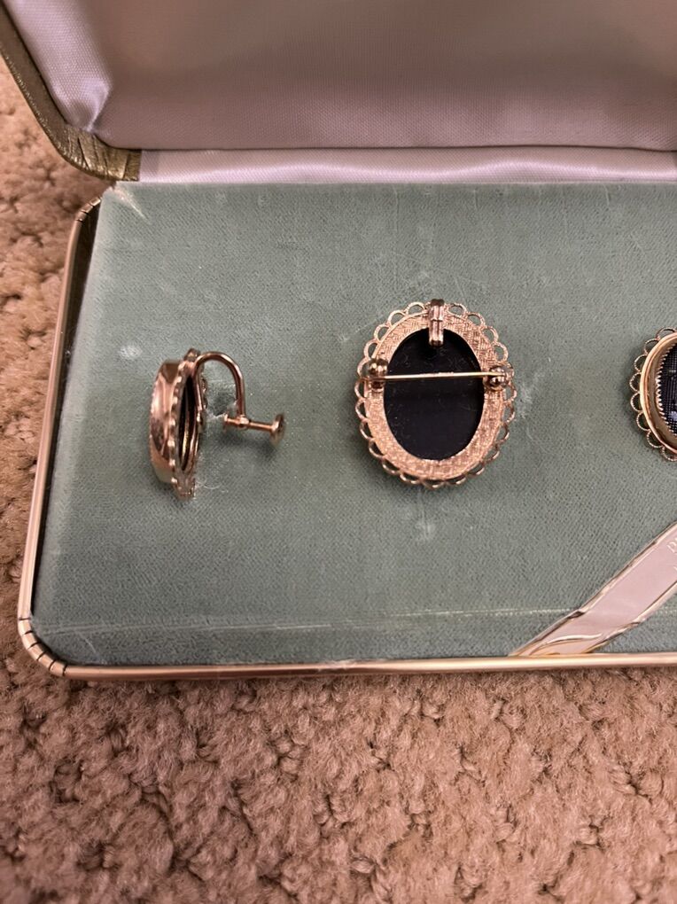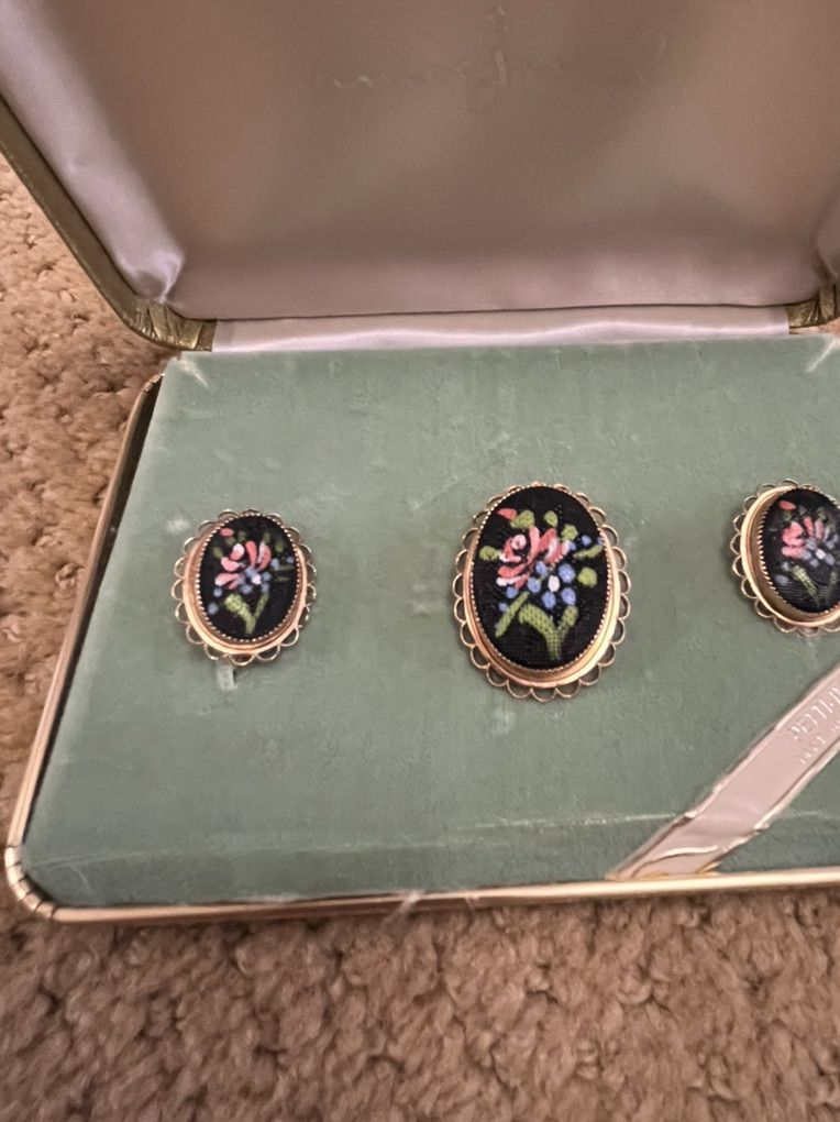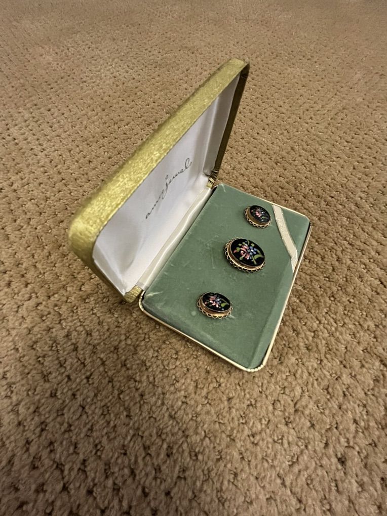 VenmoVery unique set. Still in the original gold gift box it came in. These are 14K gold overlay. The earrings are the screw back kind. They appear to have never been worn. Selling for a parent. Must see! Price is firm.