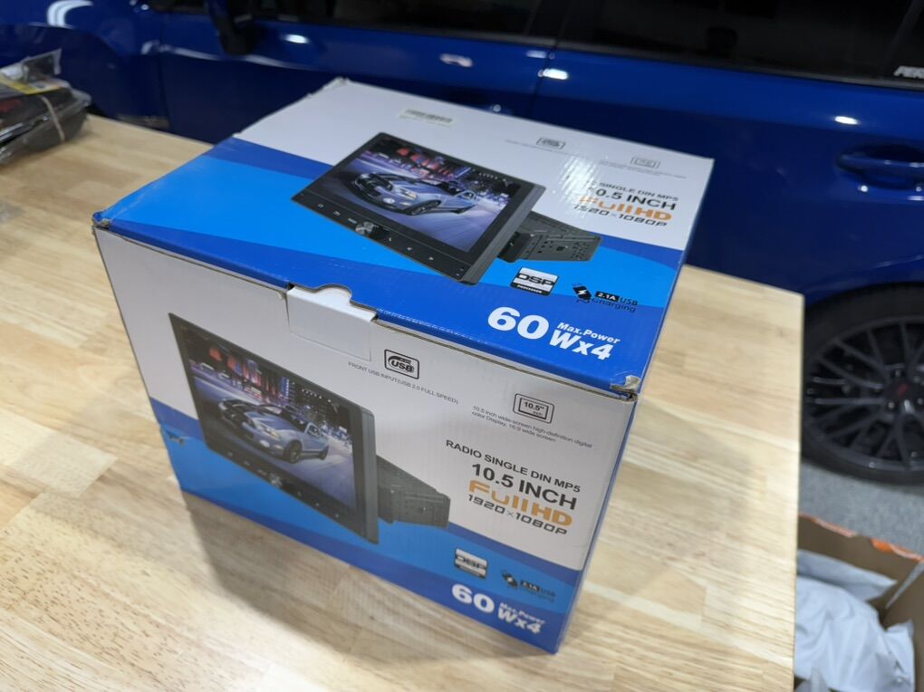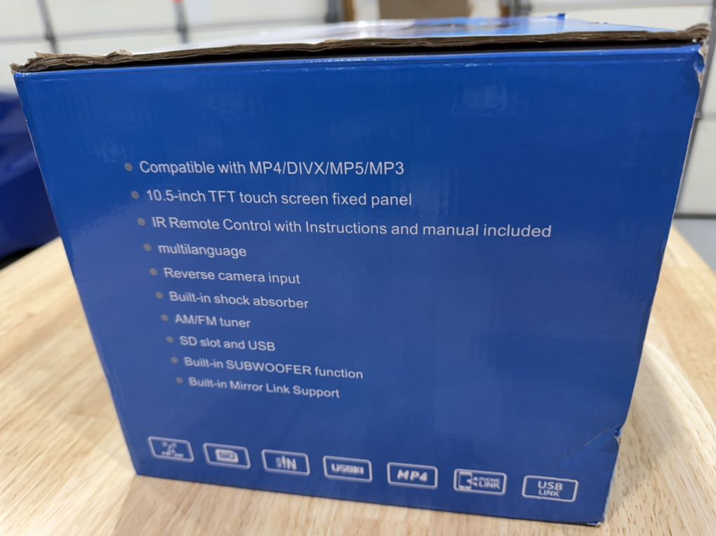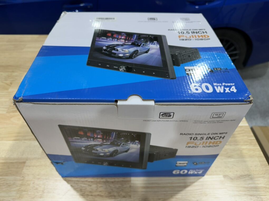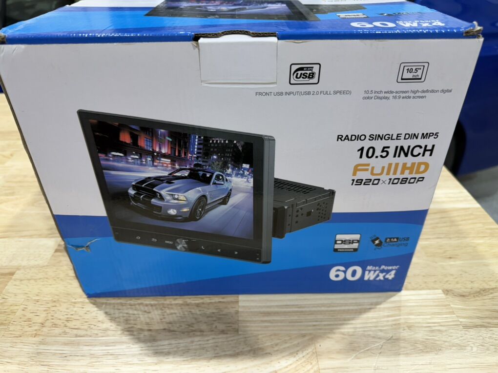 ApplePay10” floating screen (single din chassis) radio stereo with wired CarPlay and wired Android Auto over USB. Also has Bluetooth. Brand new, never installed.