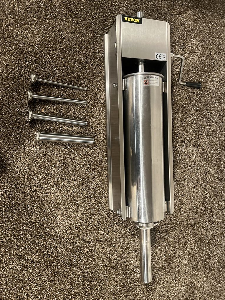 Description from website Dual-Speed Control (Fast/Slow): Choose between two speeds for quick sausage filling or slow casing filling. Equipped with an ergonomic handle for comfortable and efficient operation. 304 Stainless Steel Material: Our sausage filler is made entirely from sturdy 304 stainless steel, including the main body, base, cylinder, and tubes, designed for long service life. Horizontal Design & User-Friendly: Designed horizontally for lower center of gravity, ensuring stability during sausage production. The ergonomic handle saves energy, while dual-speed adjustment allows you to finish tasks quickly. Multiple Filling Tubes: Comes with five stainless steel filling tubes to meet various size requirements, ideal for making sausages, hot dogs, churros, and snack sticks, suitable for both commercial and home use. Large Capacity & Easy to Clean: This horizontal sausage stuffer features a 7 L / 15 lbs stainless steel cylinder, accommodating large amounts of meat to save you time. It has a detachable design for easy cleaning.
