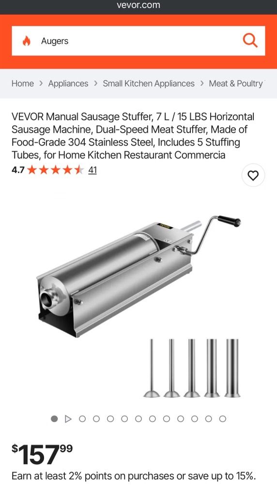 VenmoVEVOR Manual Sausage Stuffer, 7 L / 15 LBS Horizontal Sausage Machine, Dual-Speed Meat Stuffer, Made of Food-Grade 304 Stainless Steel, Includes 5 Stuffing Tubes, for Home Kitchen Restaurant