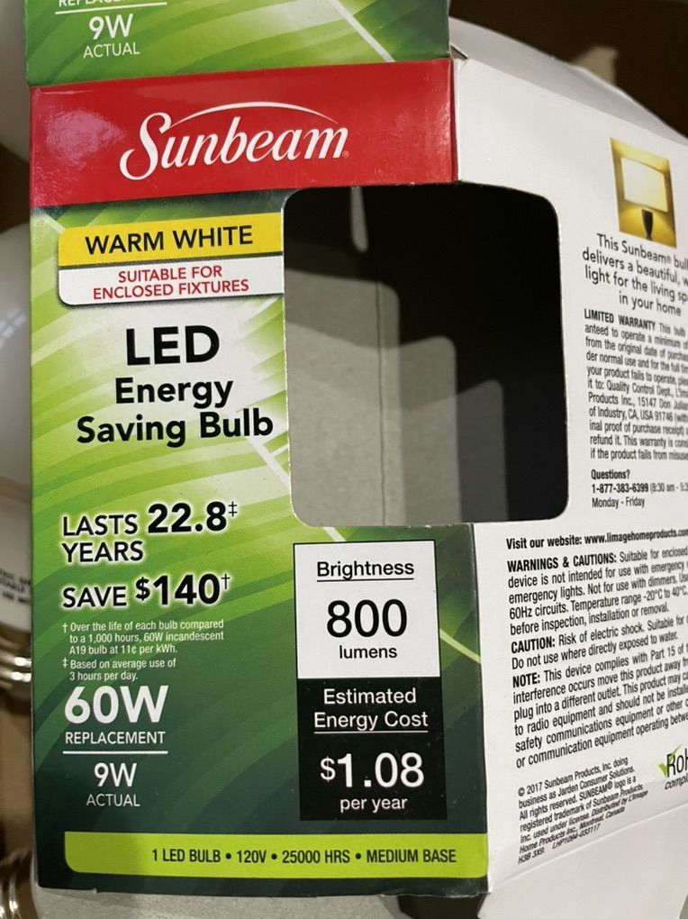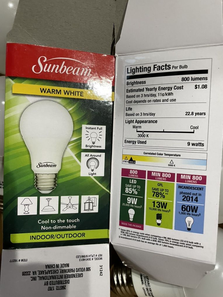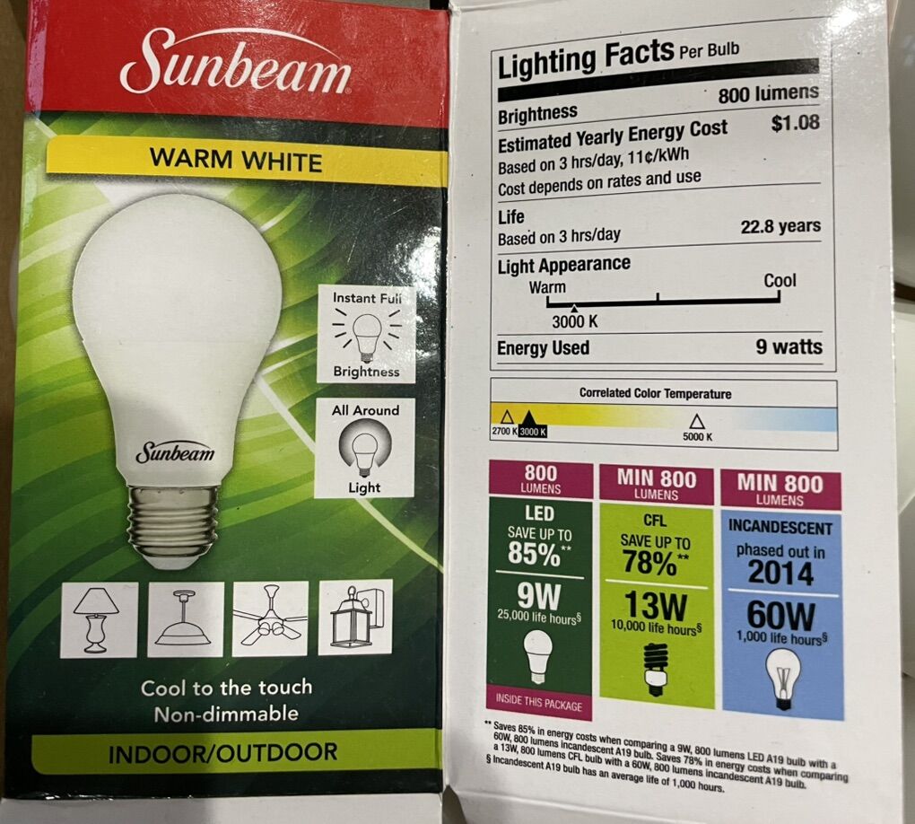 ApplePaySunbeam LED Warm White 9W Light Bulb Replace 60W, open stock total 6.