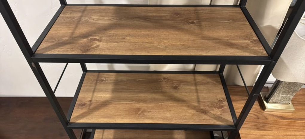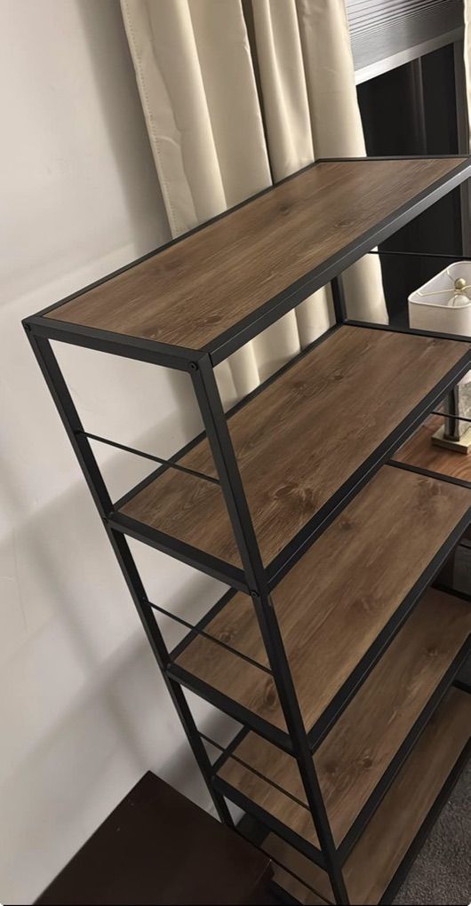 VenmoVersatile tall tower for vertical storage-perfect for books, plants, decor, office supplies, or bedroom accents. Slim design fits great next to desks, under windows, or in tight spaces (see photo staged in bedroom for real-life look). Model: BS600RMMWBBW (discontinued industrial series). Features: • About 61 high x 18 wide × 16 deep - slim profile saves floor space • 4 open shelves for easy access and display • Sturdy powder-coated black metal frame with rustic wood-look laminate shelves • Industrial/rustic style - mixes well with modern, farmhouse, or neutral decor Condition: Good used - fully sturdy, no wobbles or structural issues. Has a couple small chips on the edges (cosmetic only, check close-up photos) - priced accordingly to move quick. Still looks sharp and functional! Smoke-free home. Pickup in South Jordan. Cash or Venmo. Message with any questions or to come see it!