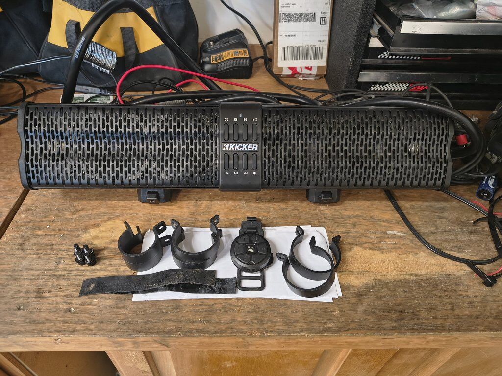 ZelleKicker soundbar with wireless controller.