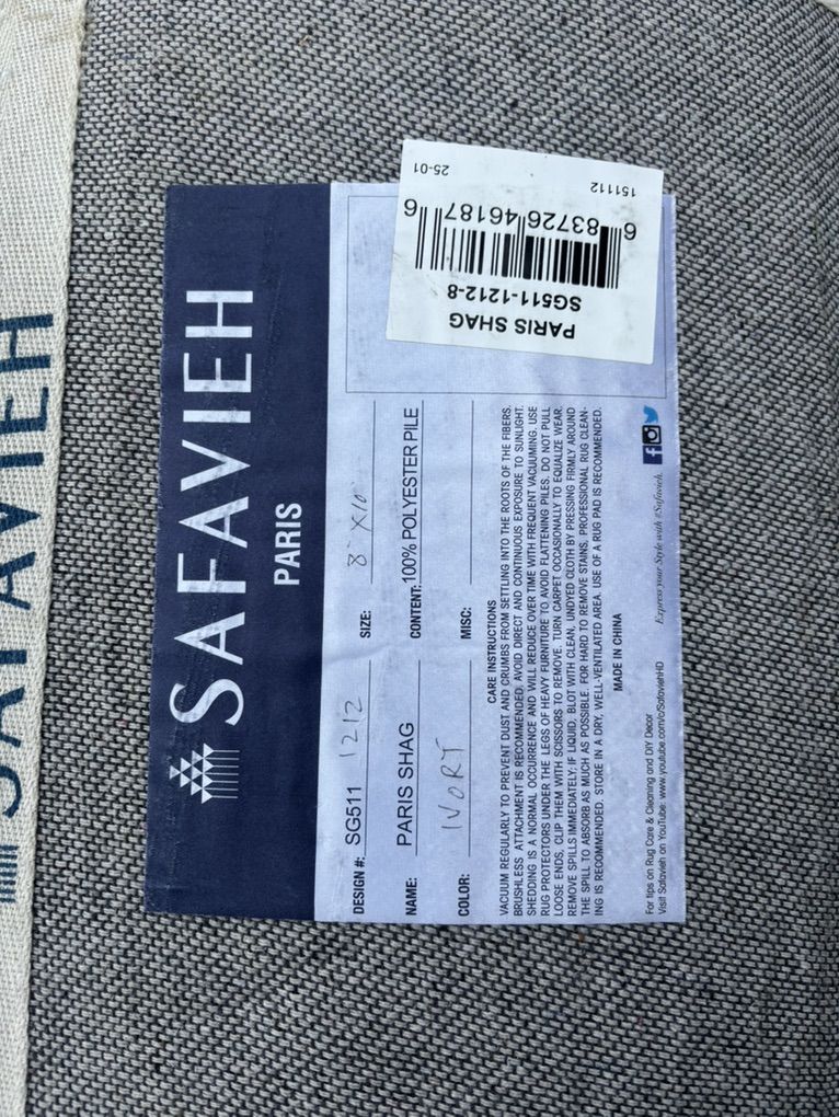 PayPal“Used” but like-new 8x10 foot rug, minor damage on underside which I have included photos of. Top has never been walked on, I only unrolled to take photos and check quality. Overall a very nice and SOFT medium-hair-length “shaggy” rug. I’m honestly kinda sad to let this one go. Retails for double what I am selling for, selling it as is, basically new OBO. It’s heavy too, lays flat almost immediately after being rolled for months. Ivory color, details in the tags in photos or I’ll do my best to answer questions.
