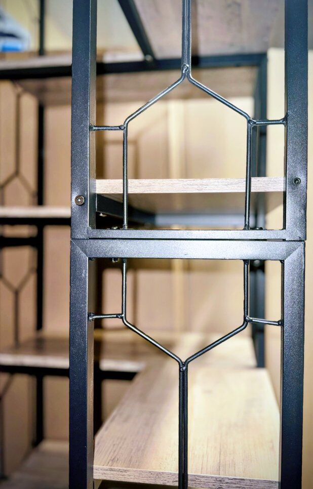 Condition: Brand new — already assembled and ready to place Style: Industrial / modern farmhouse Color: Rustic wood shelves with black metal frame